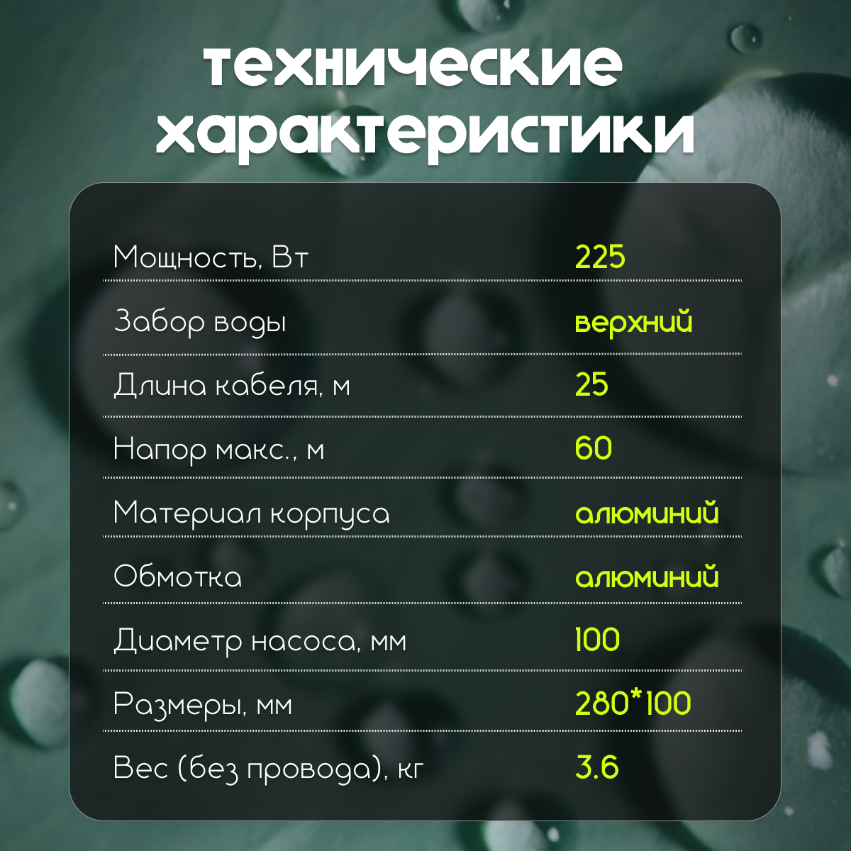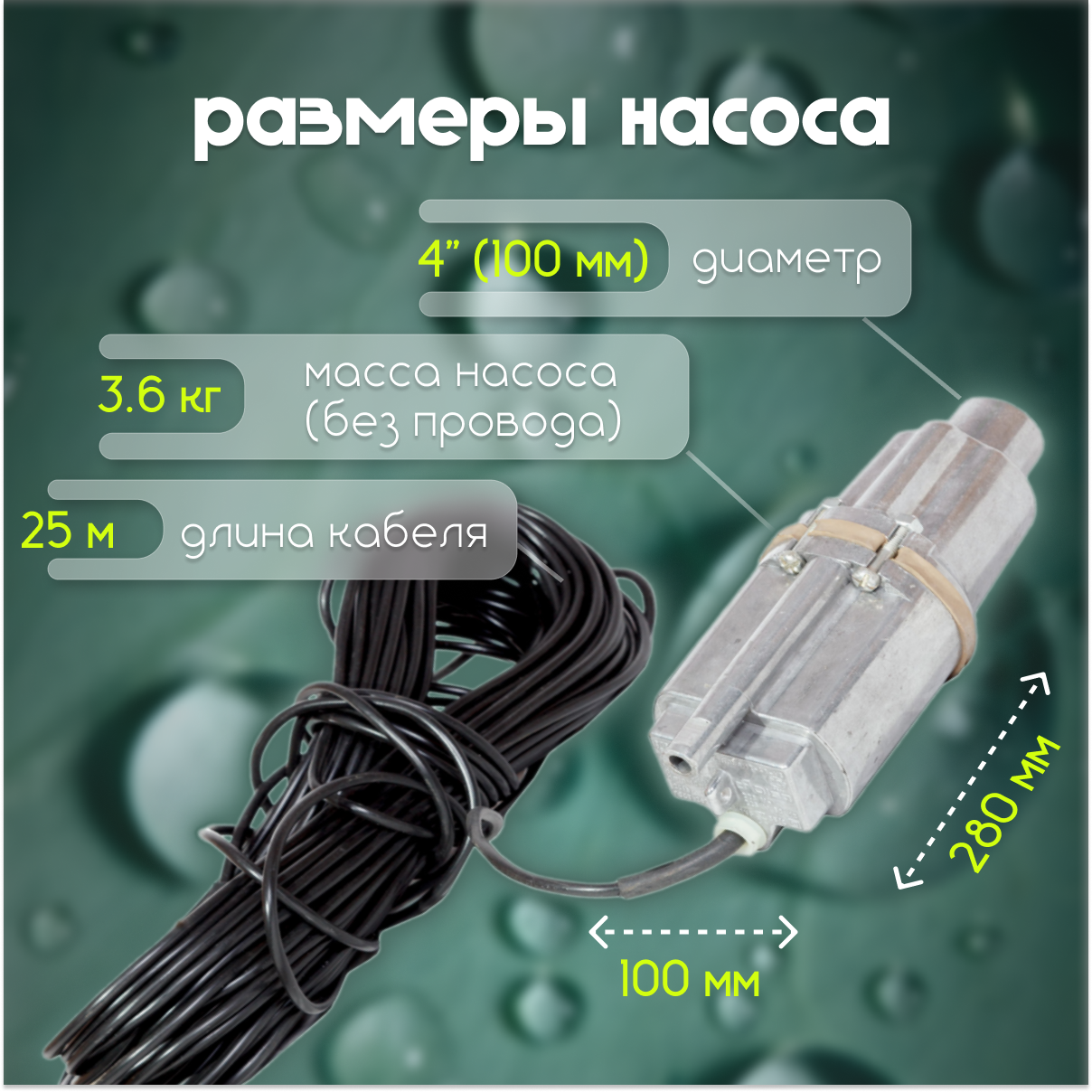 Насос погружной для воды Ручеек Техноприбор 25м, верхний забор, алюминиевая обмотка информация:
