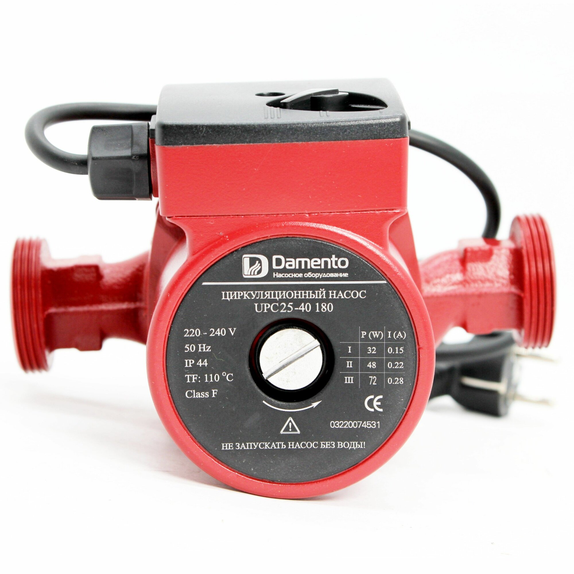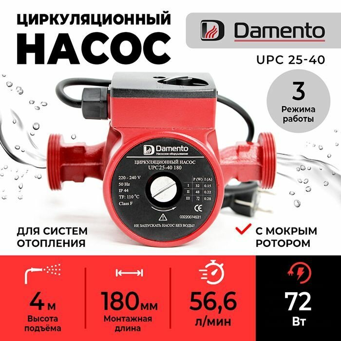 Насос циркуляционный для отопления DAMENTO UPC 25-40 (72 Вт, 180 мм, 56,6 л/мин, макс. напор 4м) информация: