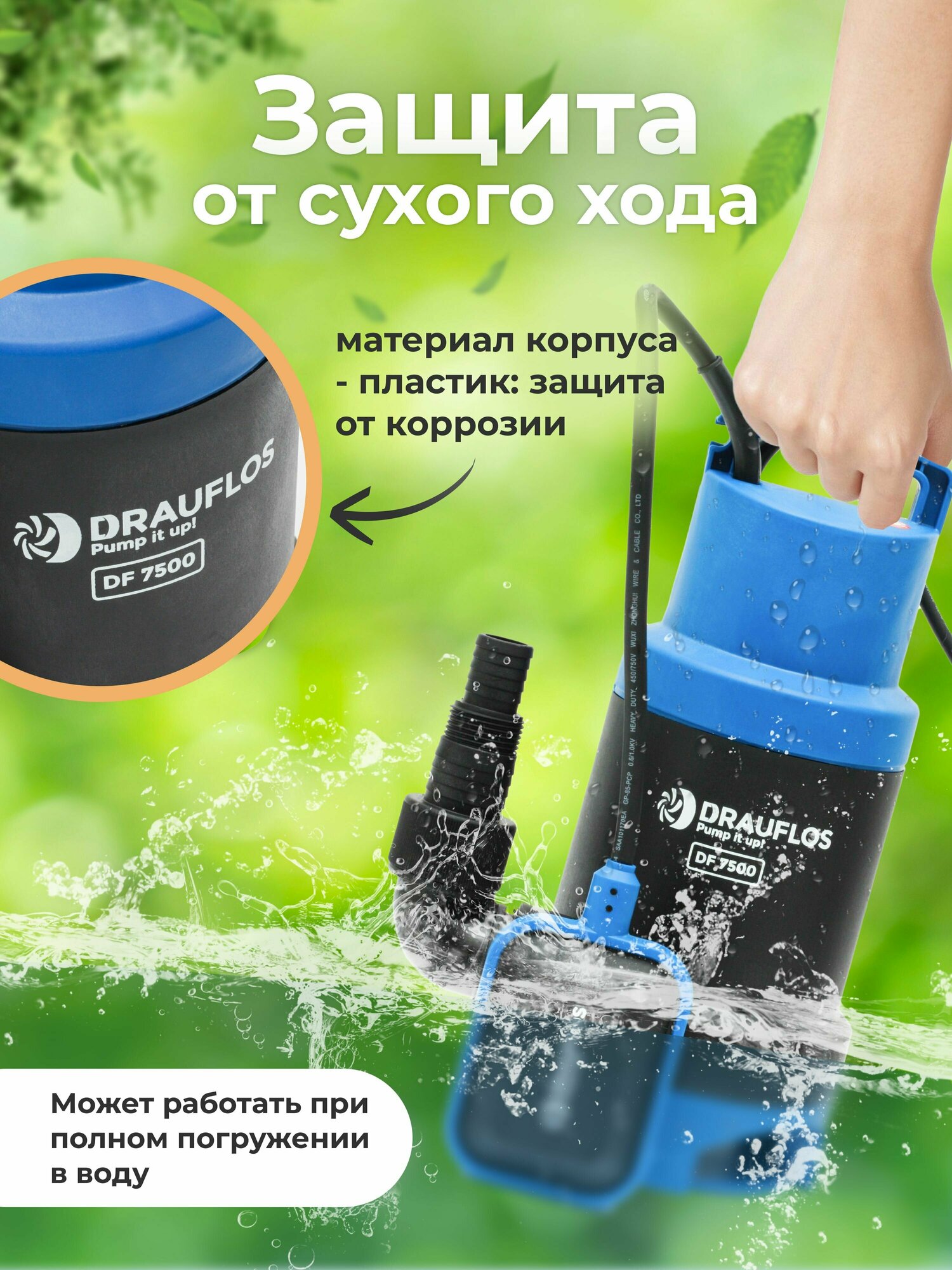 Насос дренажный для грязной воды Drauflos DF 7500, 350 Вт, глубина погружения 7 м, с поплавком информация: