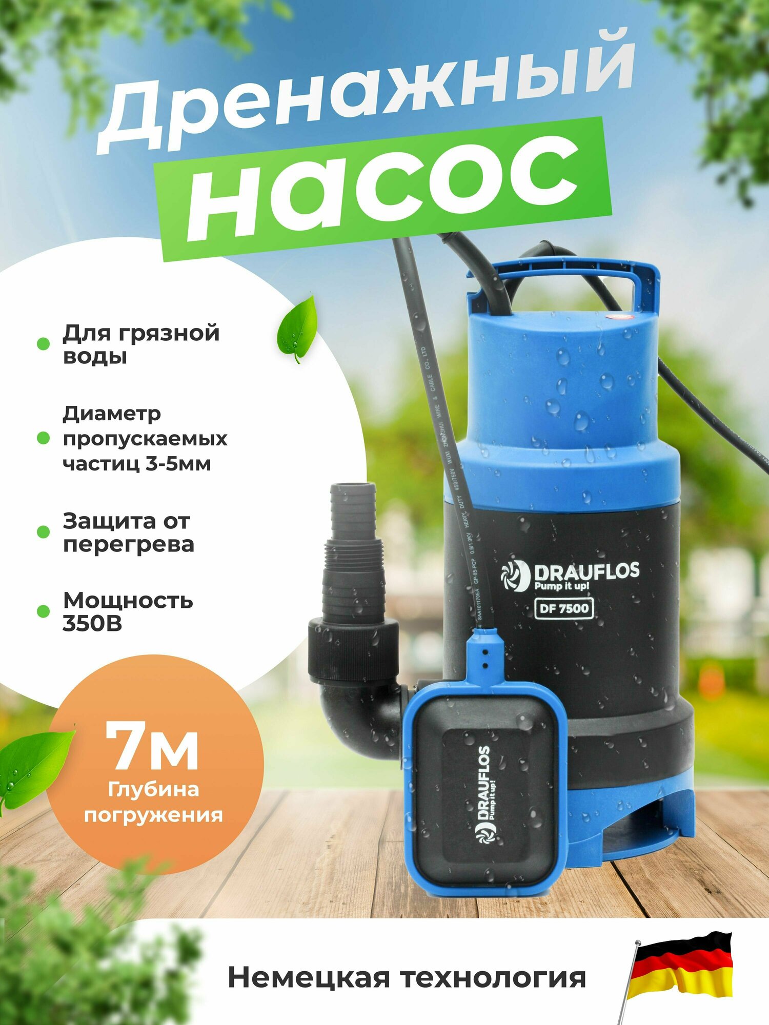 Отзывы на Насос дренажный для грязной воды Drauflos DF 7500, 350 Вт, глубина погружения 7 м, с поплавком
