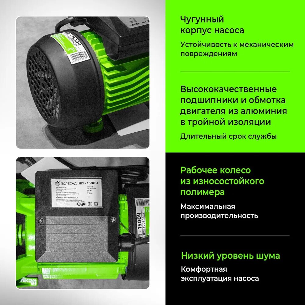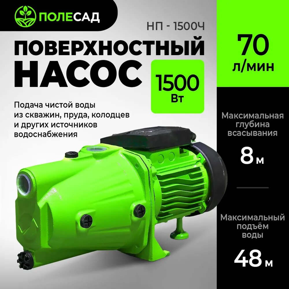 Насос для воды поверхностный полесад НП - 1500Ч/ 1500Вт, 48м, 70л/мин информация: