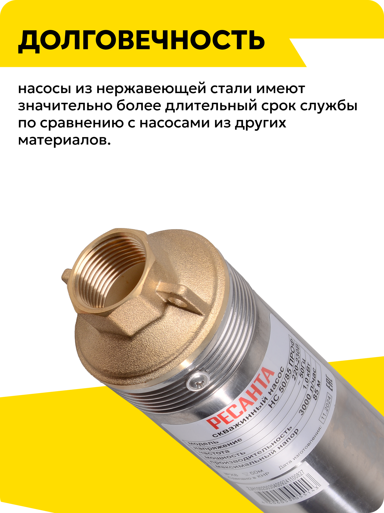 Отзывы на Скважинный насос НС 50/85 (d.75 mm, кабель 50 м) Ресанта, центробежный 1000Вт