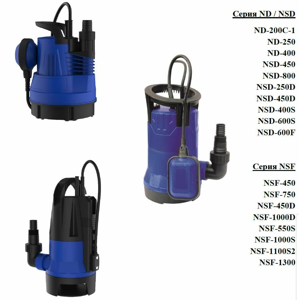 Насос погружной дренажный прима ND-400 (400Вт, 165 мм, 6000л/час, глубина погружения до 7 м) информация: