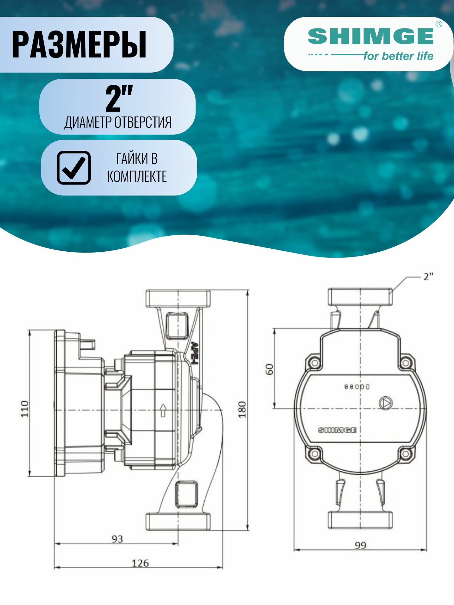Насос циркуляционный SHIMGE APE 32-6-180 с частотным регулированием (1х220В; от 3 до 45 Вт; L180), гайки в комплекте информация:
