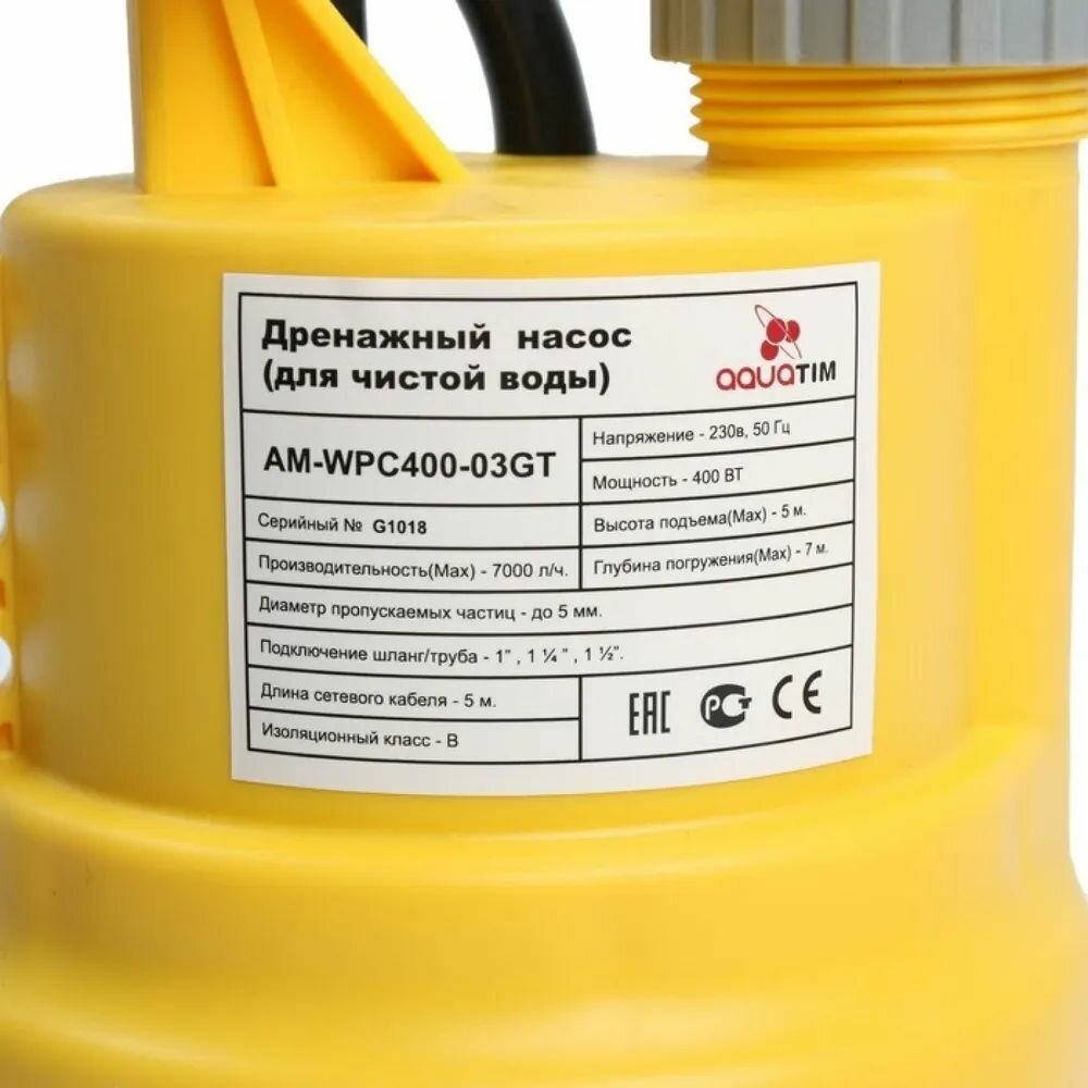 Насос дренажный 400Вт, с поплавком, AquaTim арт. AM-WPC400-03GT информация: