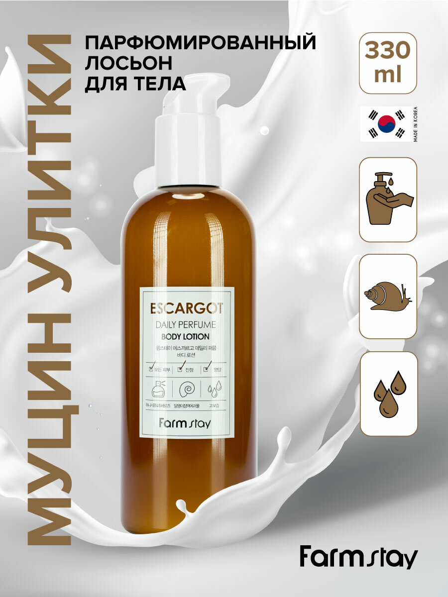 10 цен на Парфюмированный лосьон для тела с муцином улитки, 330мл, FarmStay