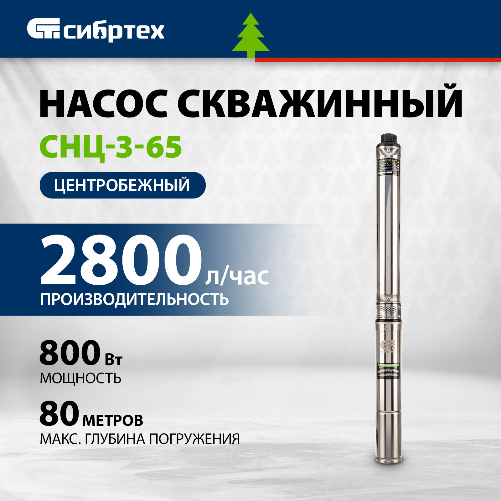 Скважинный насос Сибртех CНЦ-3-65, центробежный, диаметр 3", 800 Вт, 2800 л/ч, напор 65 м 97294 информация: