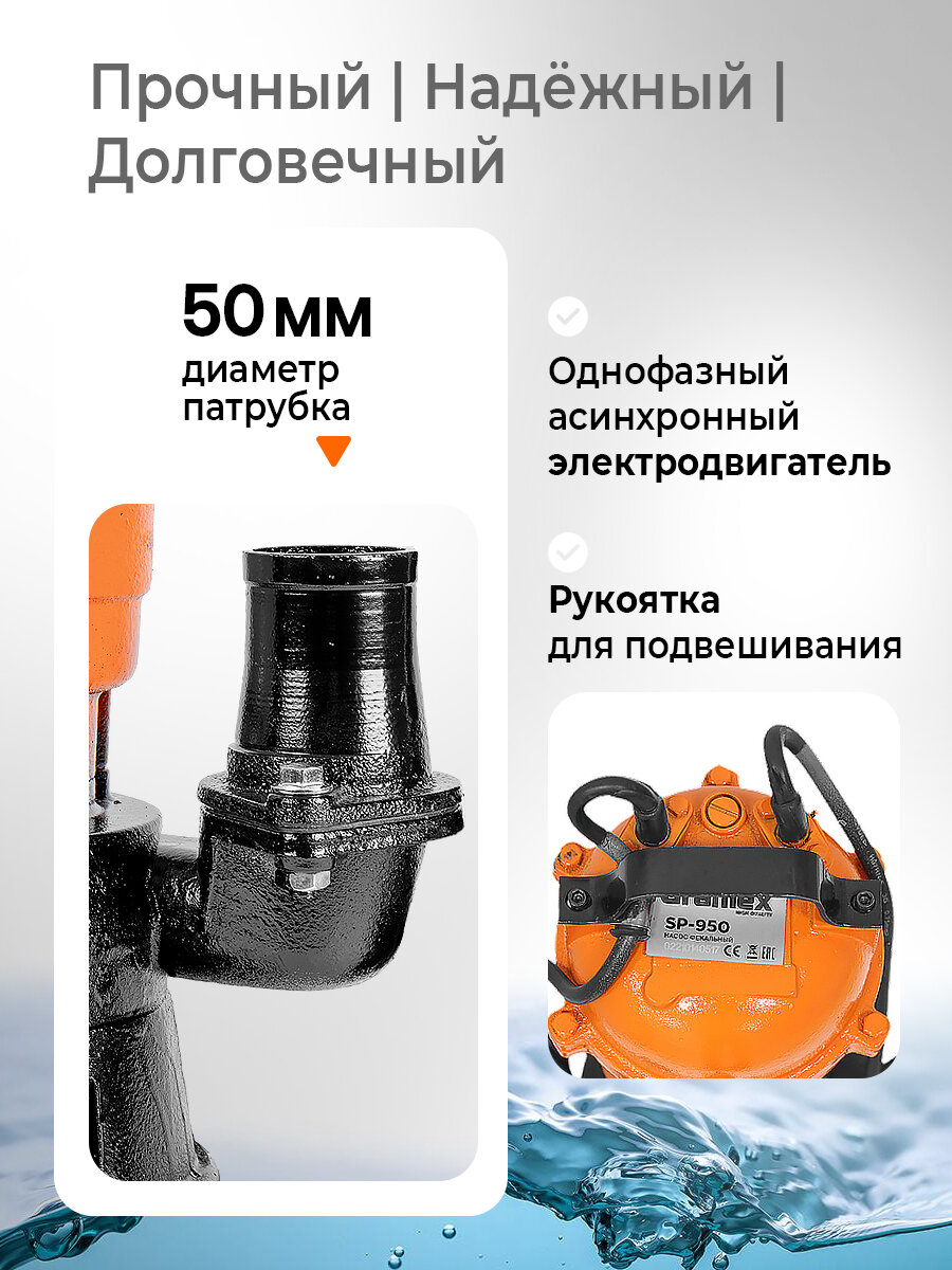 Погружной насос дренажный фекальный с измельчителем и поплавковым выключателем GRAMEX SP-950, 220 В информация: