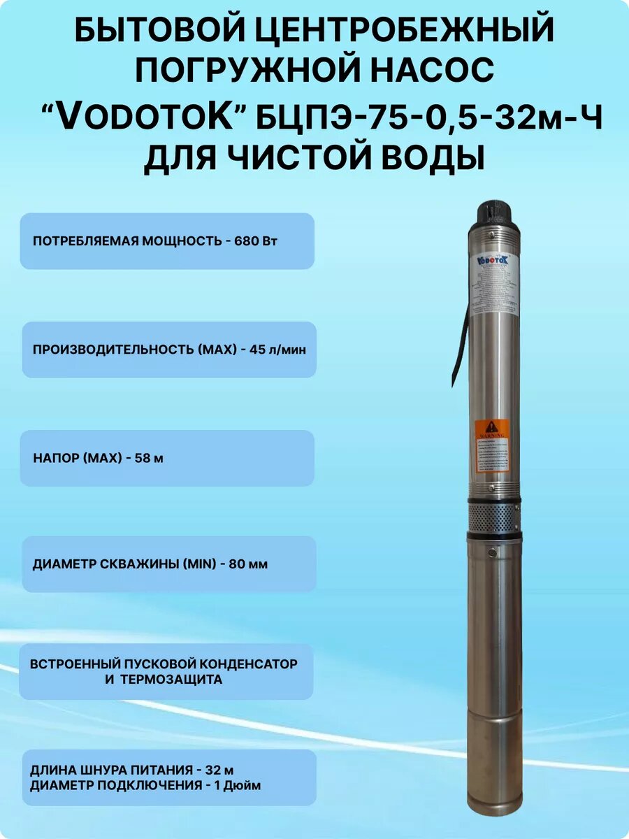 Насос погружной центробежный БЦПЭ-75-0,5-32м-Ч информация: