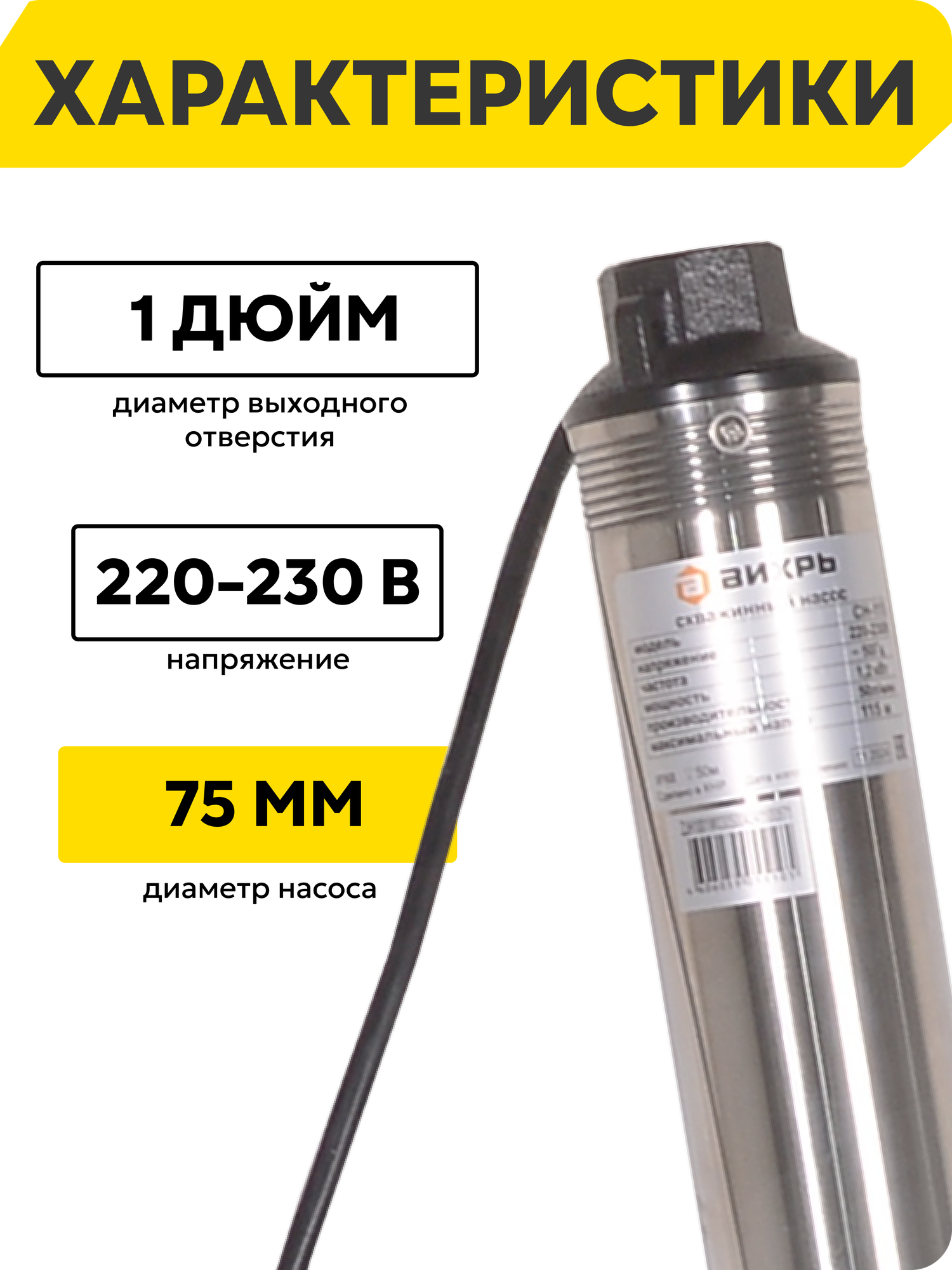 Скважинный насос СН-115, центробежный, напор 115 м, 3000 л/ч производительность, 1200 Вт информация: