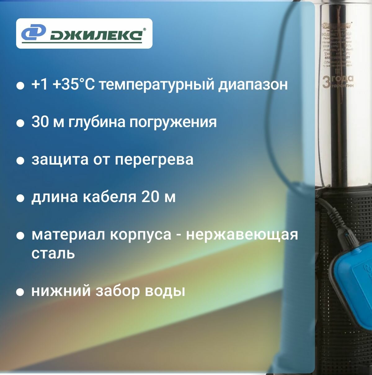 Насос погружной Водомет Джилекс ПРОФ 55/50А с донным фильтром информация: