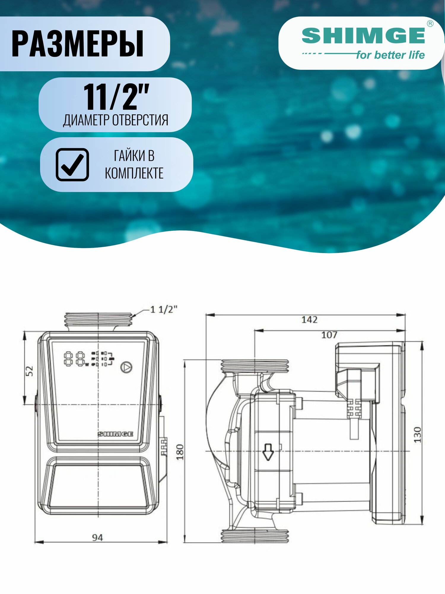 Насос циркуляционный 25-8-180 с частотным распределителем SHIMGE APM-A 90 Вт, 220В, гайки в комплекте информация: