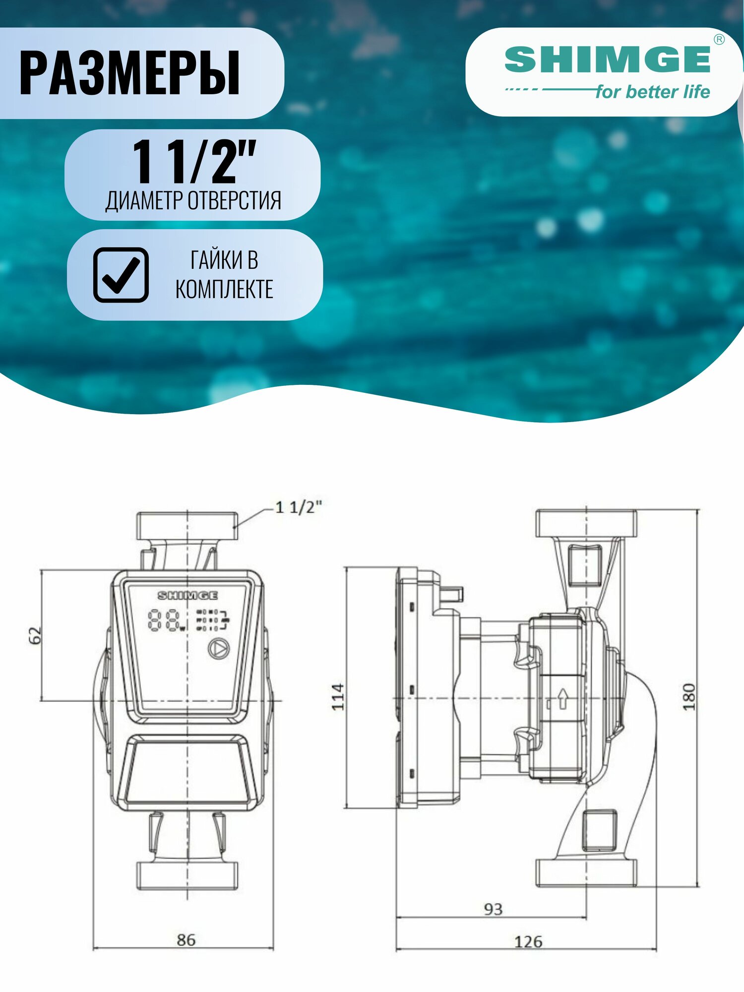 Насос циркуляционный 25-6-180 с частотным распределителем SHIMGE APM-A 45 Вт, 220В, гайки в комплекте информация:
