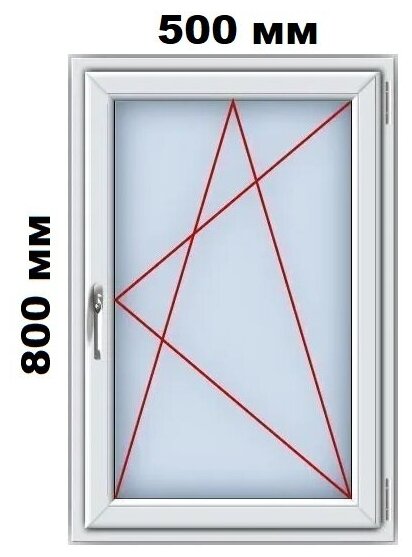 Окно ПВХ , Поворотно-Откидное, высота 800 х ширина 500 мм, REHAU, одностворчатое, правое, энергосберегающий стеклопакет, белое информация: