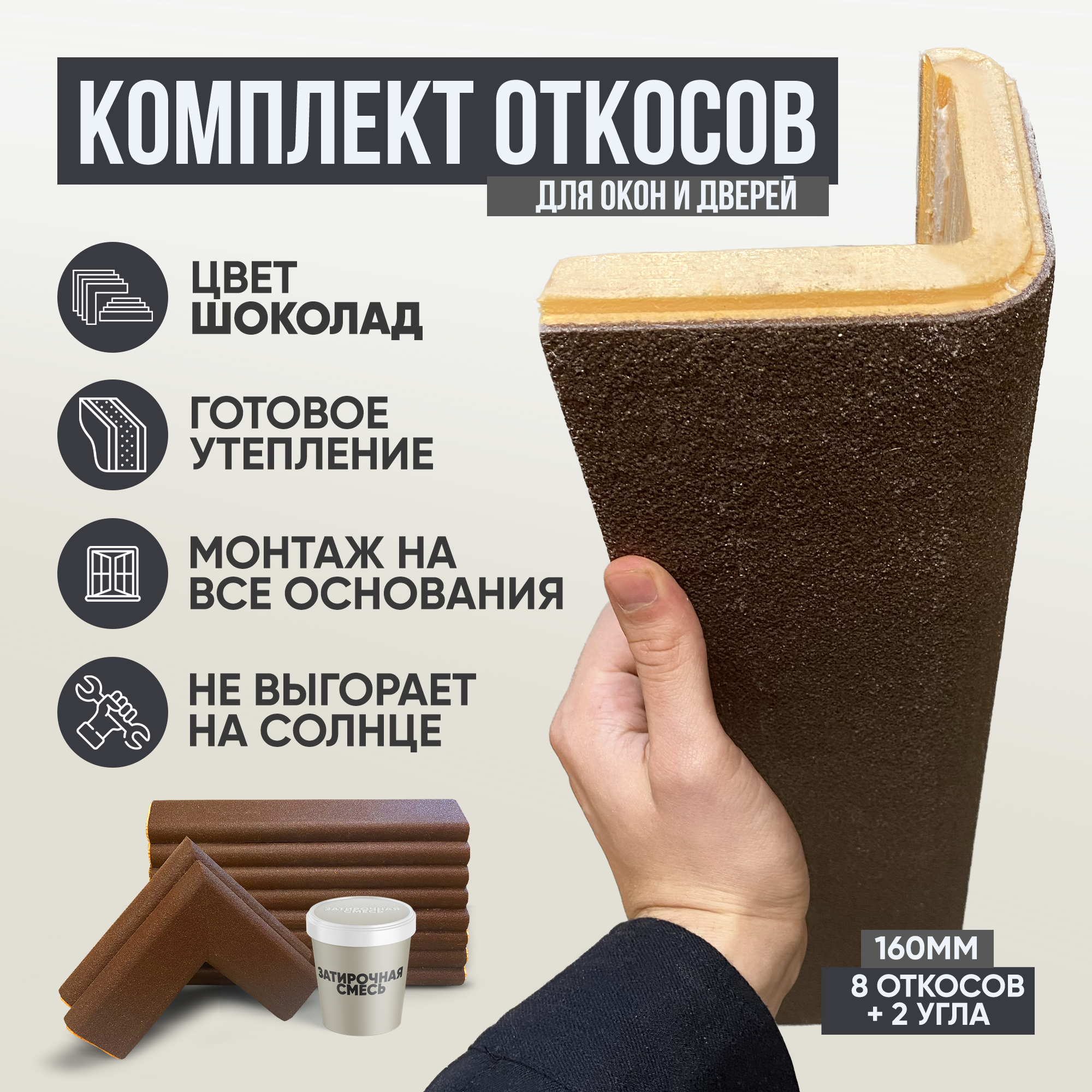 10 цен на Оконные Откосы Утепленные, Фасадные, Набор на окно (с углами), цвет Шоколад, 8 откосов + 2 угла, глубина 160 мм