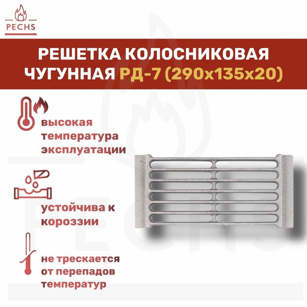 Колосник для печи чугунный Рубцовский литейный завод РД-7 290х135, решетка чугунная колосниковая для печи, в баню и сауну, печное литье информация: