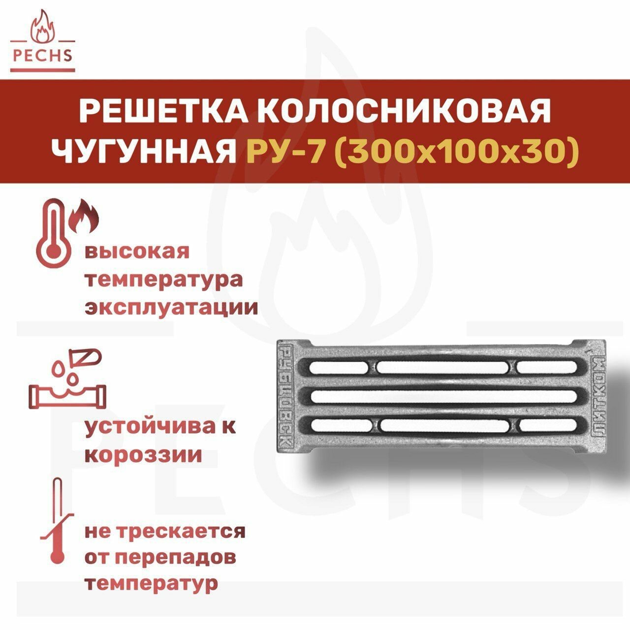 10 цен на Колосник для печи чугунный Рубцовский литейный завод РУ-7 300х100, решетка чугунная колосниковая для печи, в баню и сауну, печное литье