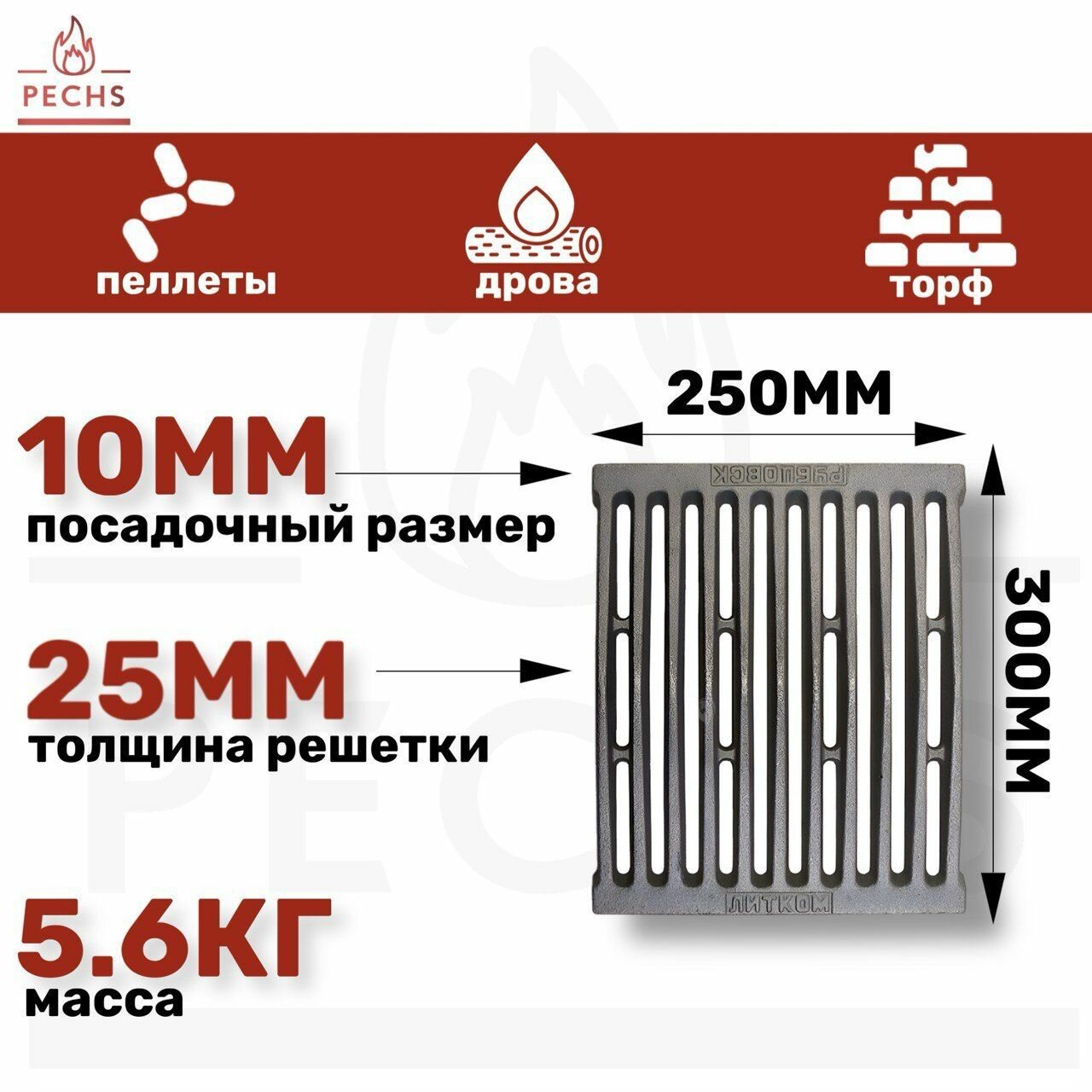 10 цен на Колосник для печи чугунный Рубцовский литейный завод РД-5 300х250, решетка чугунная колосниковая для печи, в баню и сауну, печное литье