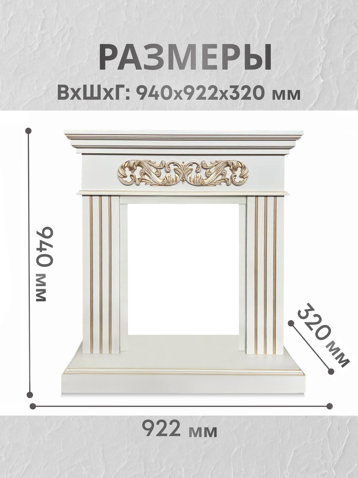 Портал для камина Bern BG слоновая кость с золотой патиной, каминный портал, без электрического очага информация: