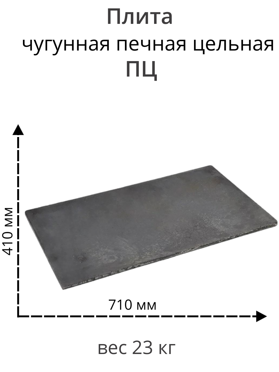 Плита печная чугунная цельная 710*410мм, для печи информация: