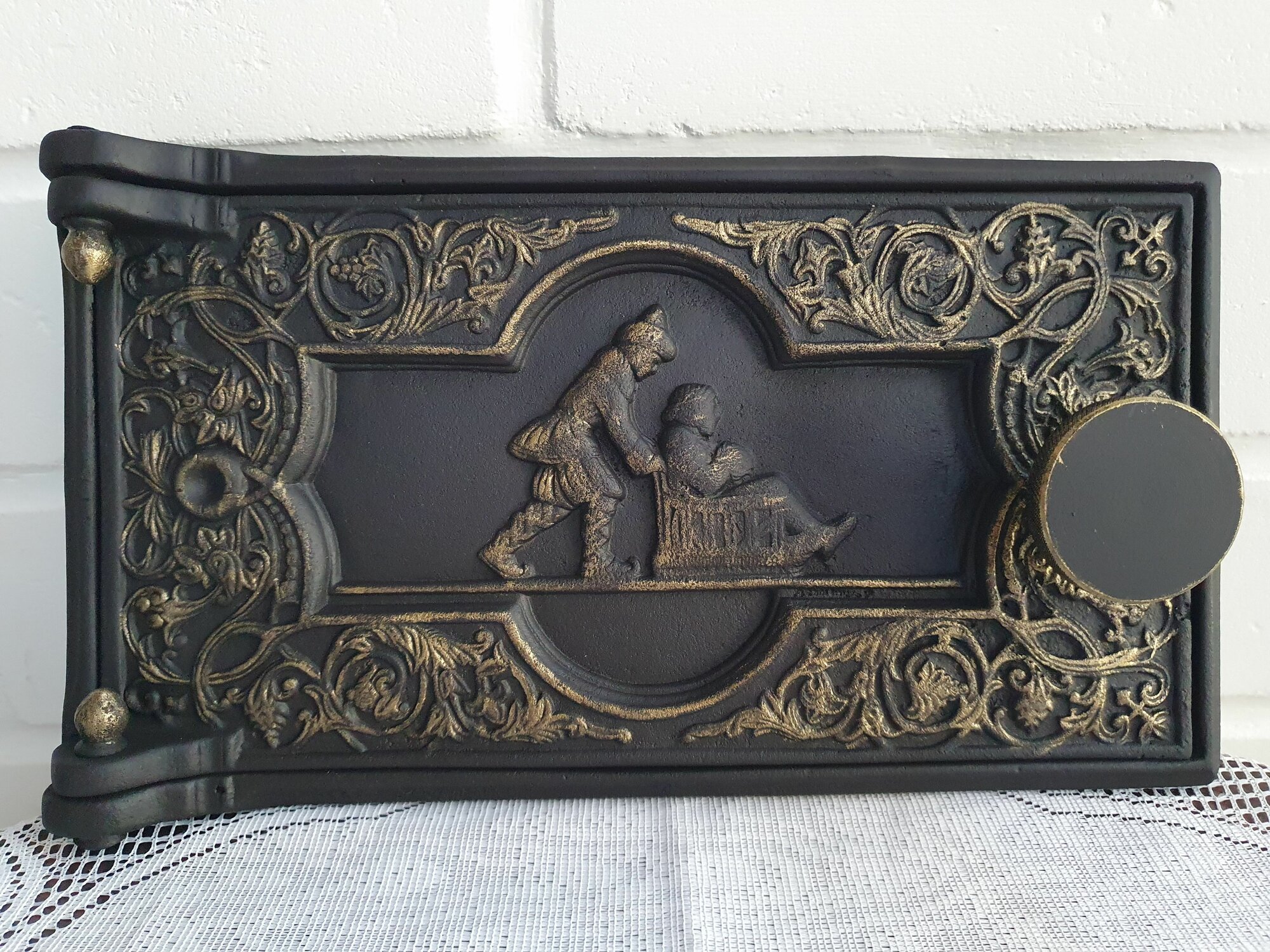 10 цен на Старинная чугунная печная дверца, дверка поддувальная зимние забавы