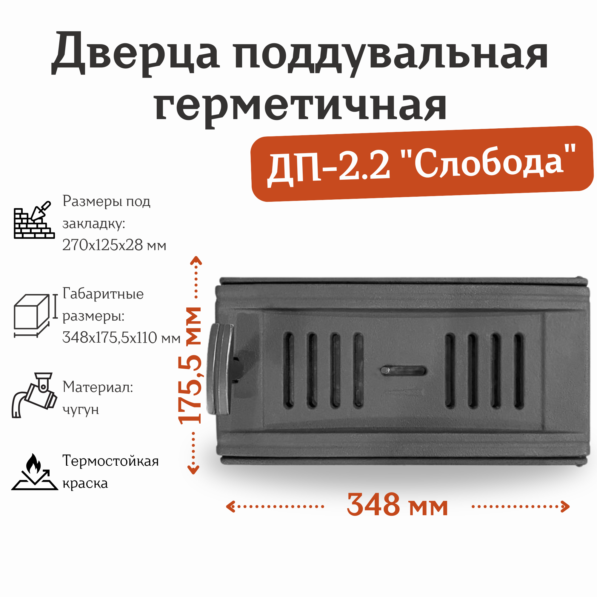 Дверца поддувальная герметичная ДП-2.2 "Слобода" (348*175,5*110 мм) информация: