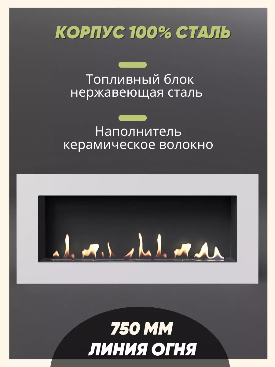 10 цен на Настенный биокамин от Subor "B 1100N", напольный, белый, 110х50 см, сталь