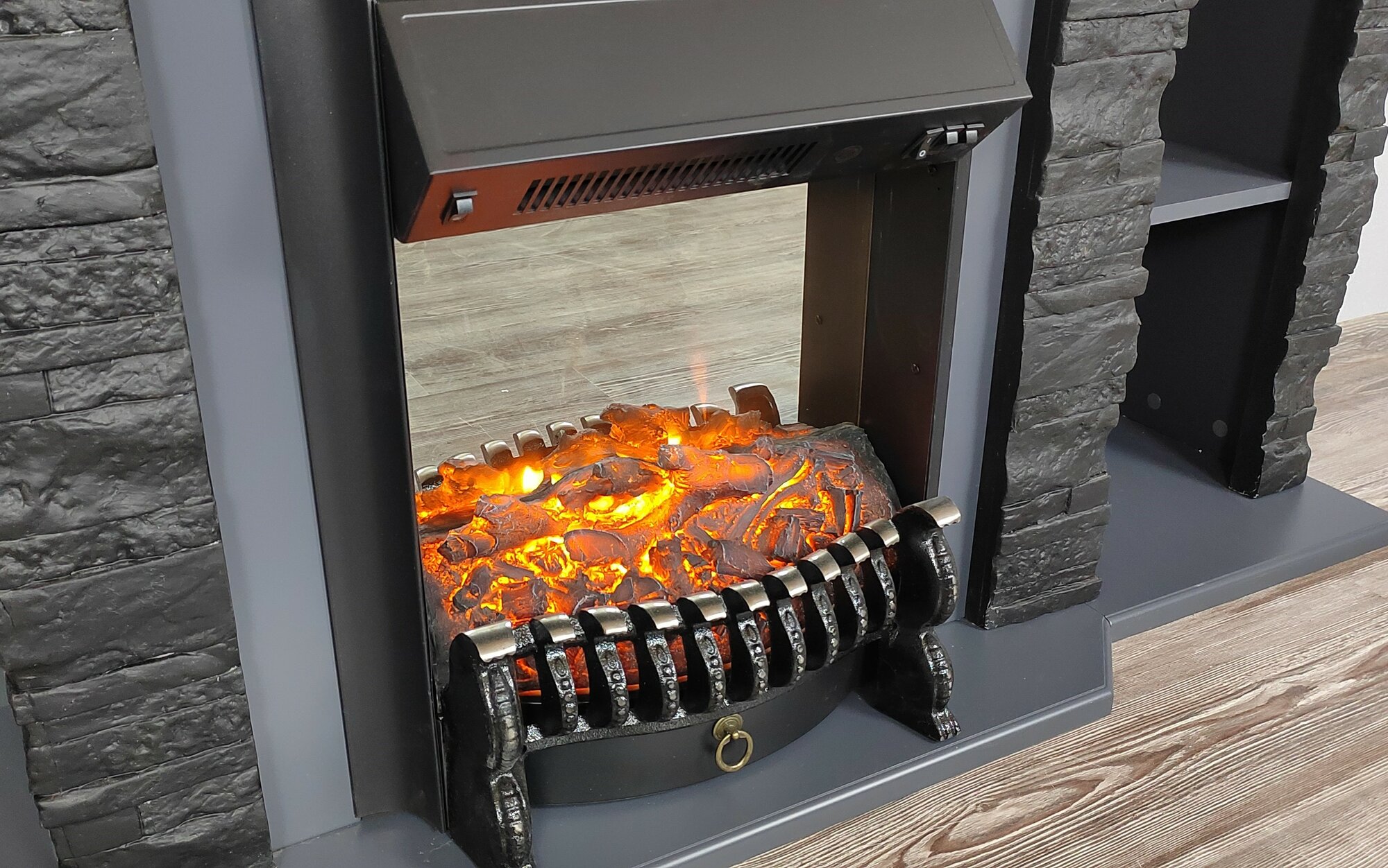 Отзывы на Камин Электрический Мальта с тумбами, Fobos, Серый графит/камень черный, напольный с обогревом. Электрокамин