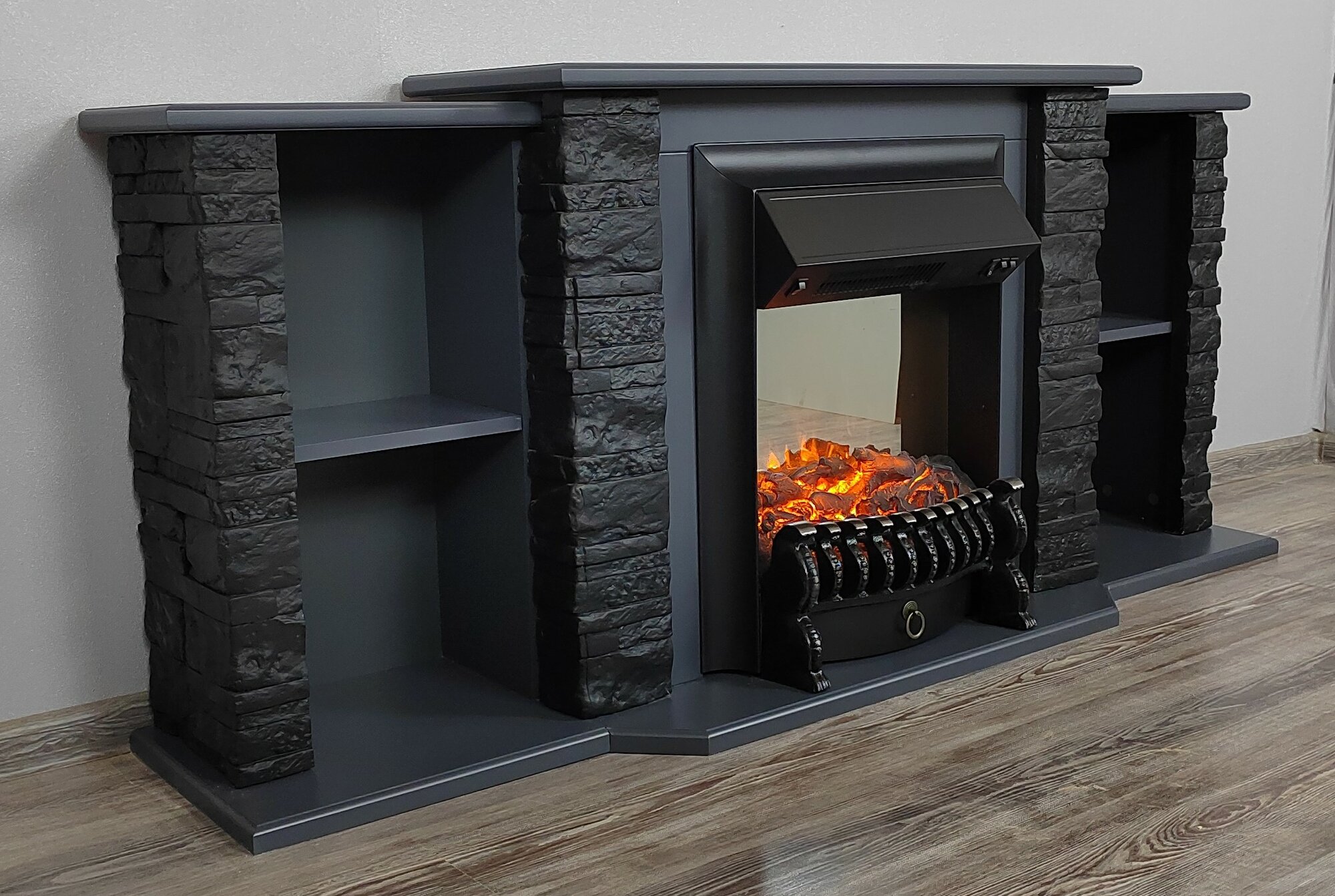 10 цен на Камин Электрический Мальта с тумбами, Fobos, Серый графит/камень черный, напольный с обогревом. Электрокамин