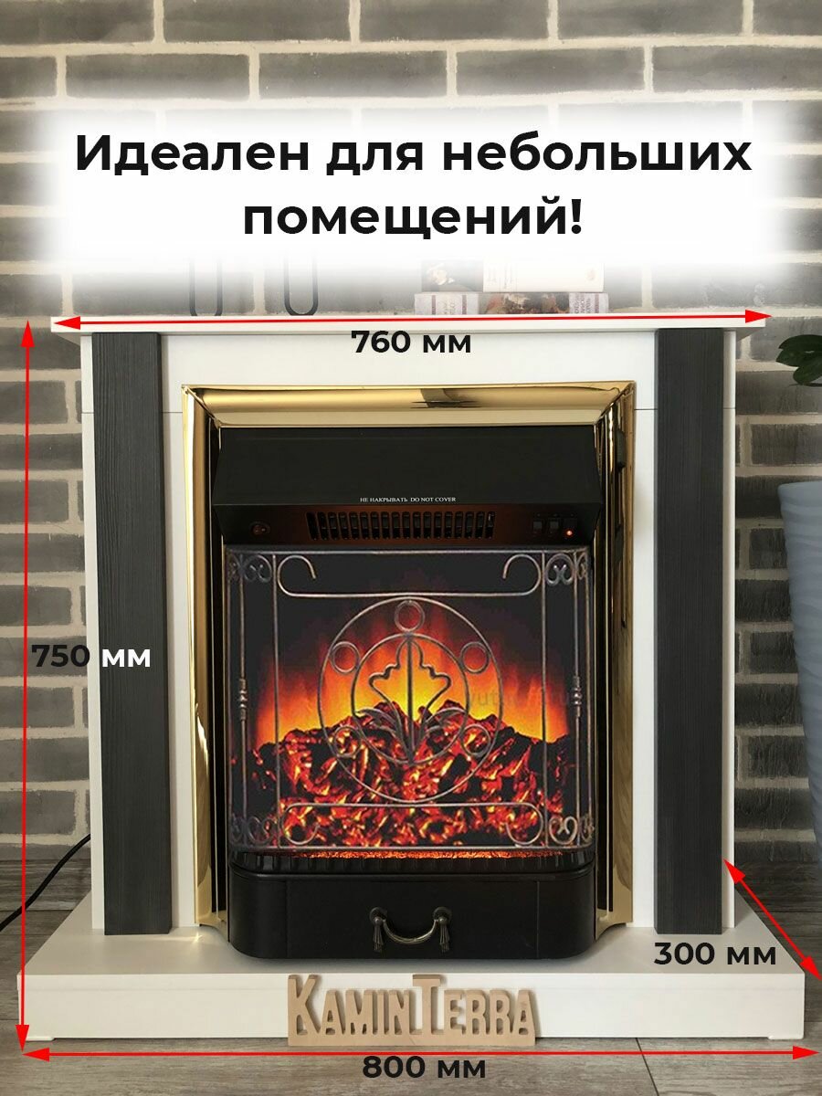 Камин электрический белый с обогревом и звуком KaminTerra Турин Белый информация:
