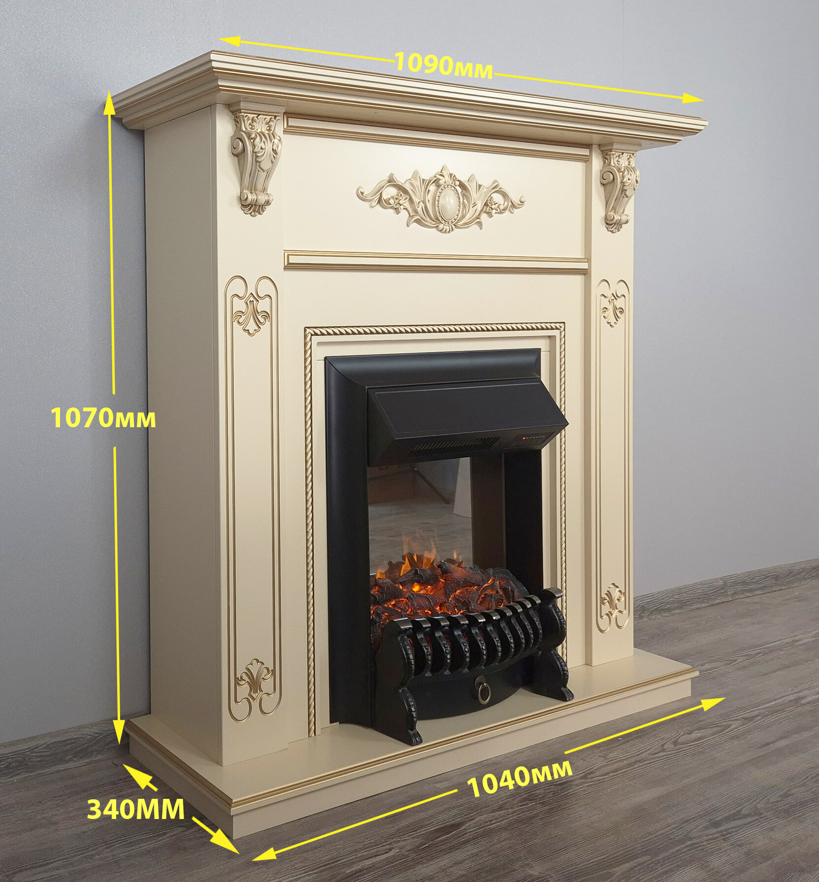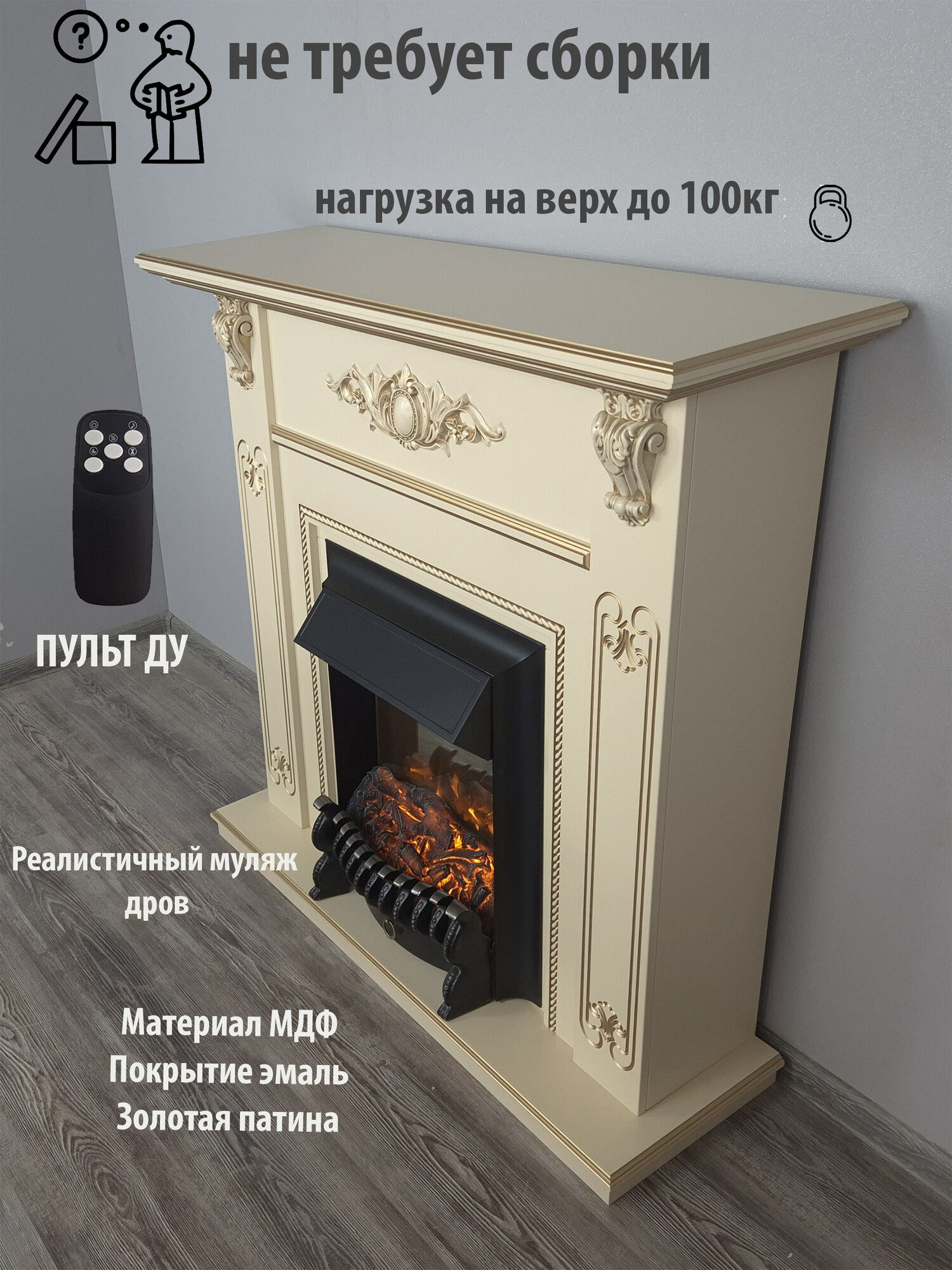 Камин электрический Верона с очагом Fobos/слоновая кость/золото напольный с обогревом и имитацией пламени (электрокамин) информация: