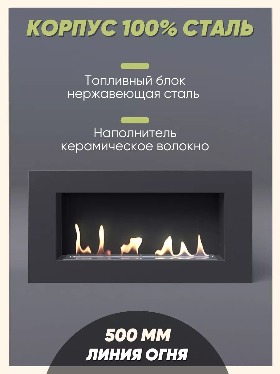 Биокамин Металл и Пламя "L 800-400V", сталь, встраиваемый, чёрный информация:
