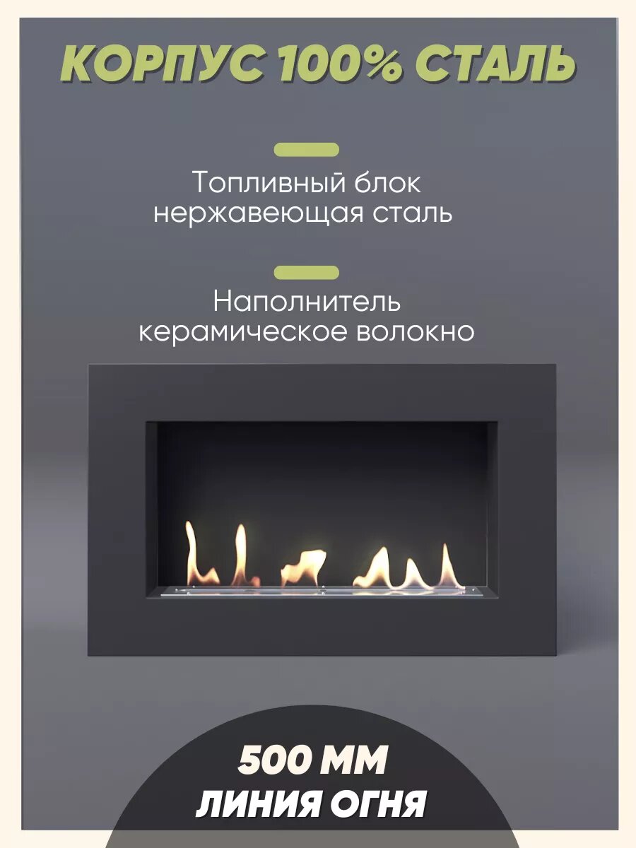 Биокамин Subor "L 800-500V", встраиваемый, черный, сталь, высота 50см 18 576 ₽