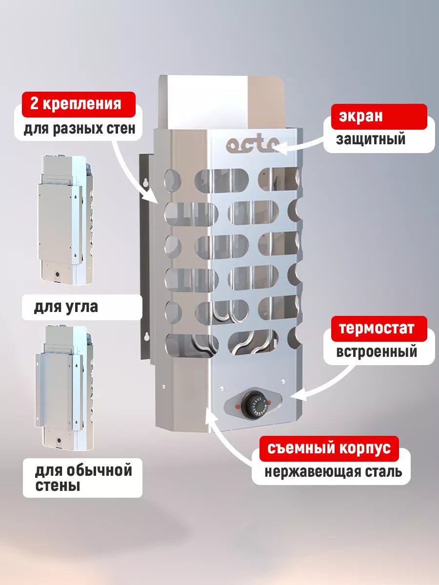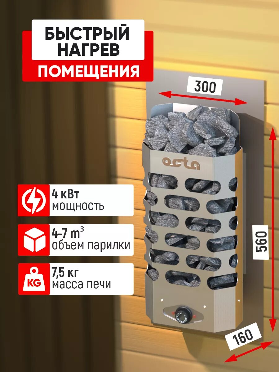 Электрическая печь для сауны и бани 4 кВт, нержавеющая сталь, настенная информация:
