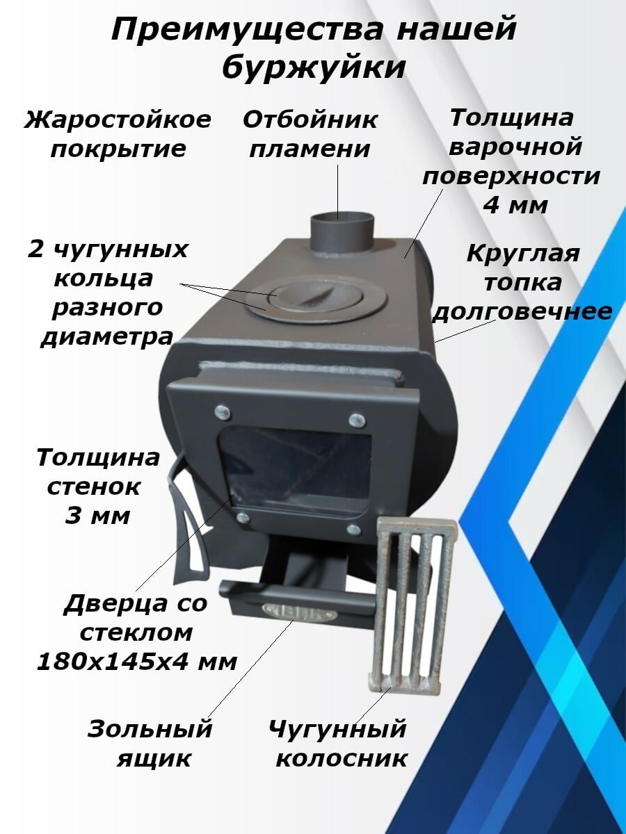 Печь буржуйка со стеклом 1ВПК печь отопительная дровяная 50 м3 информация: