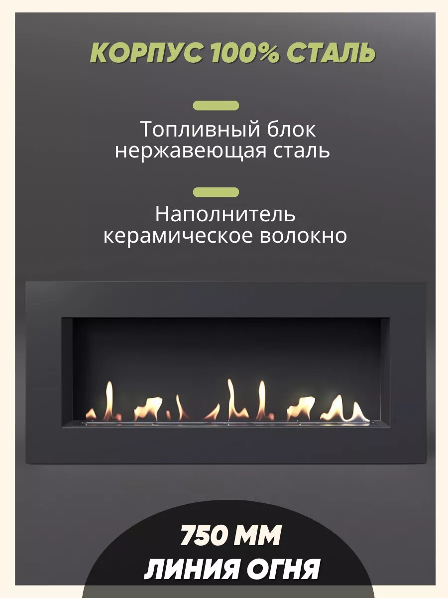 Биокамин настенный Subor "L 800-400N", настольный, черная сталь, 80x40x14 см 18 800 ₽