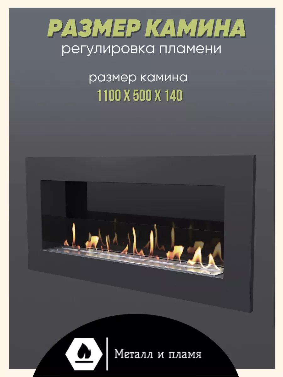 10 цен на Встраиваемый биокамин от Металл и пламя "Премиум 1100V", 2 стекла в комплекте, регулировка пламени, сталь