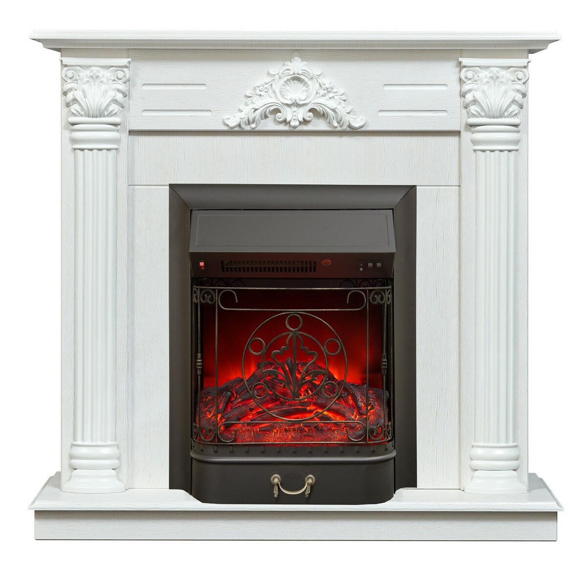 10 цен на Электрокамин Stefania WT с очагом Majestic Lux Black, белое золото, звук потрескивания дров, обогрев