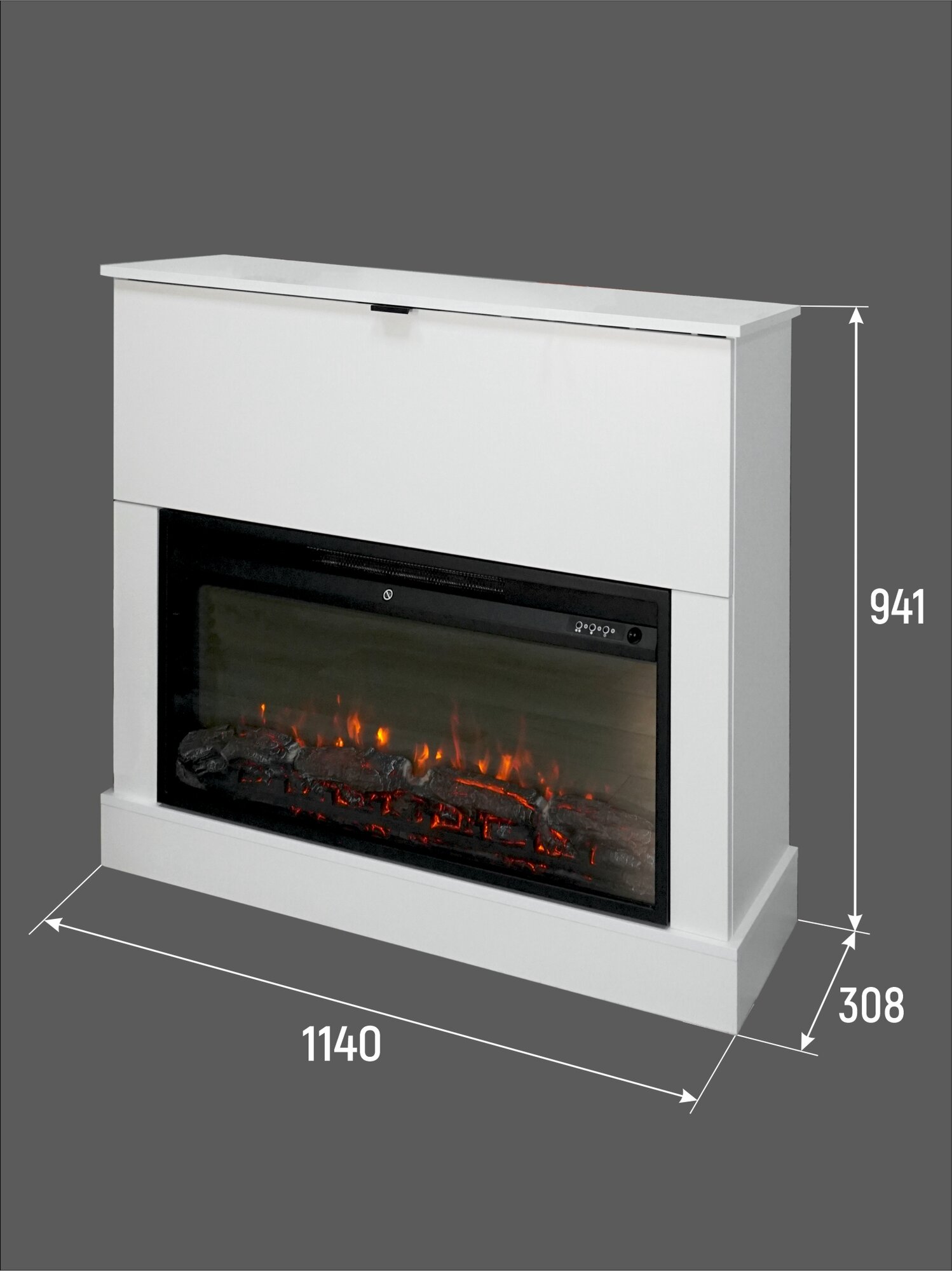 Камин электрический с эффектом пламени VITAMIN, с белым порталом - баром, звуком, обогревом, пультом ДУ информация: