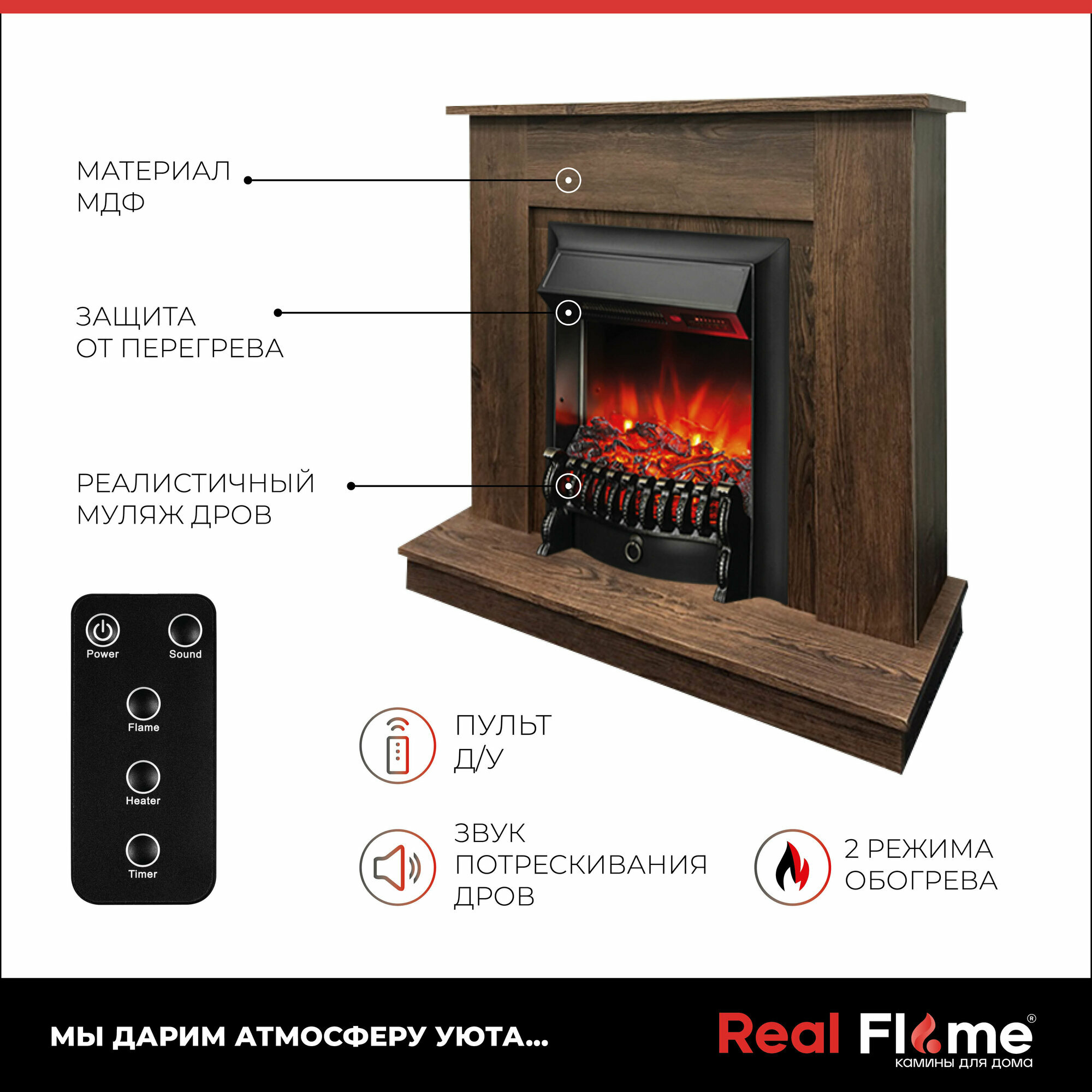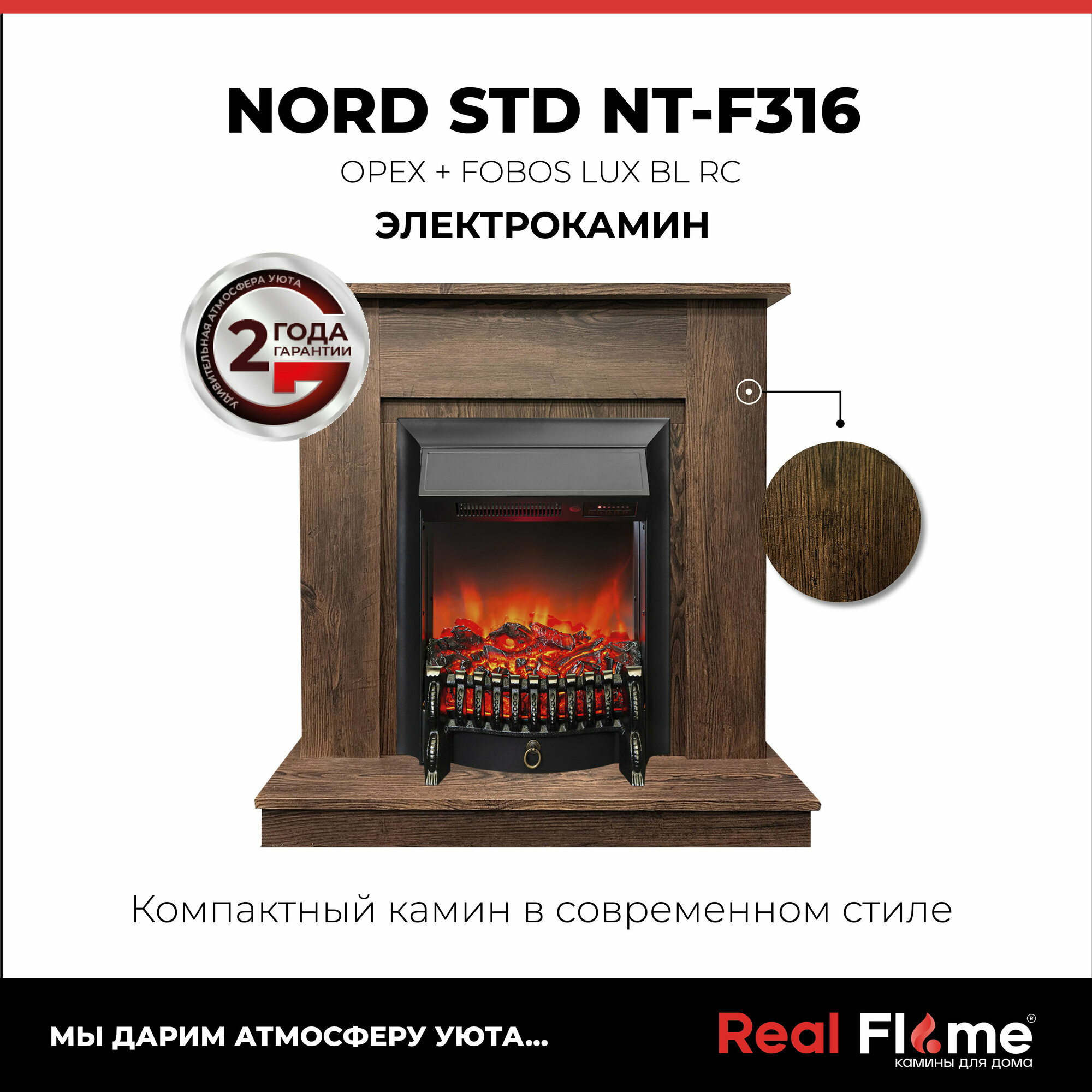Отзывы на Электрокамин RealFlame Nord коричневый МДФ с очагом Fobos, напольный камин с обогревом, пульт ДУ