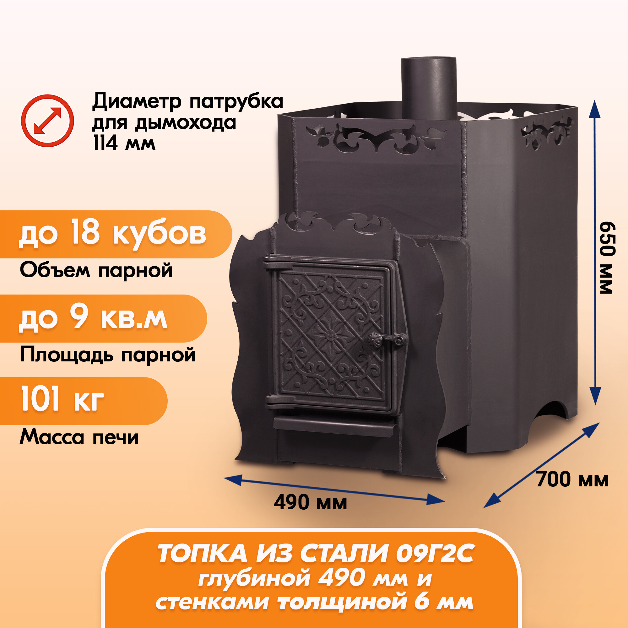 Печь банная PECHITEPLOV "Дубок с ВТК" (6 мм) информация: