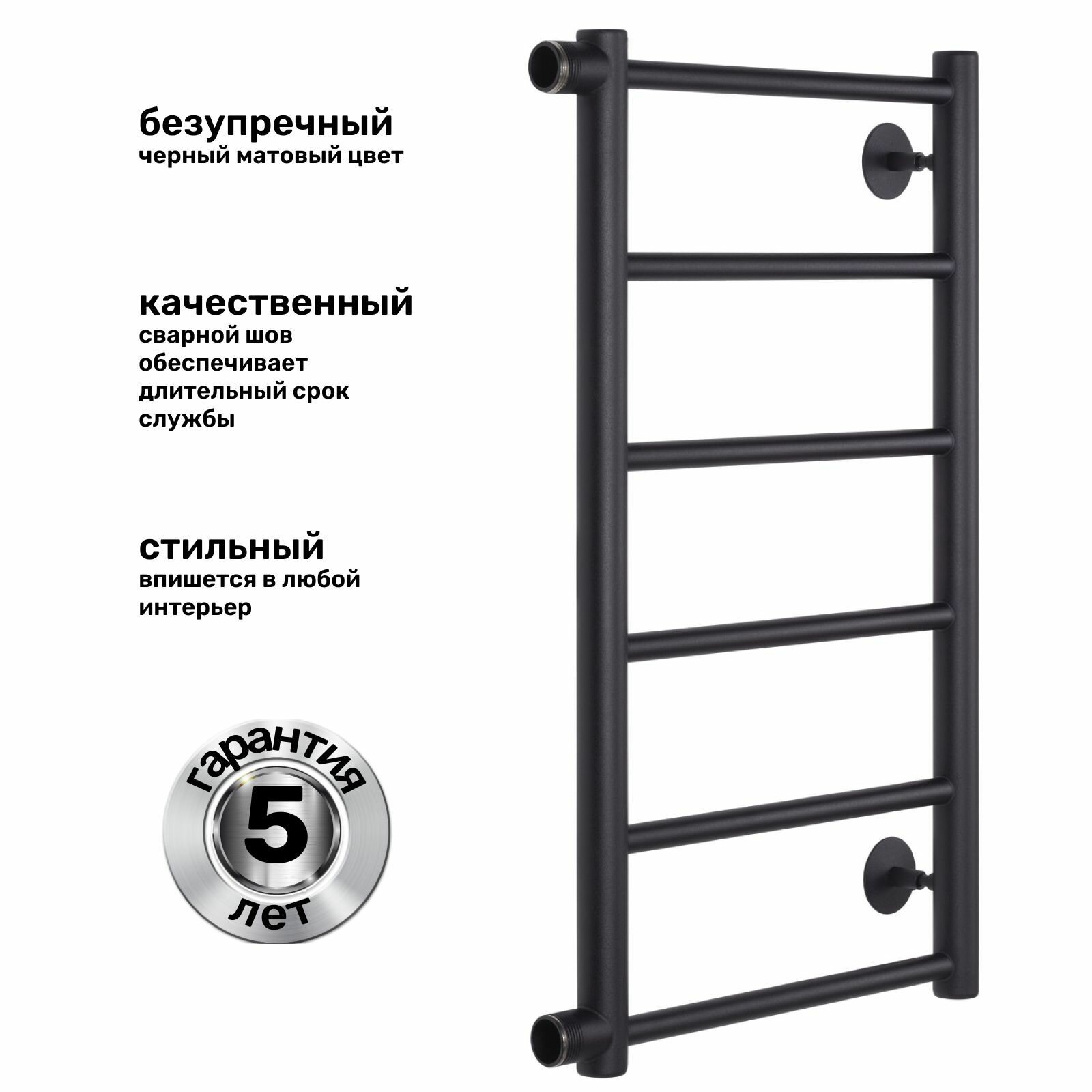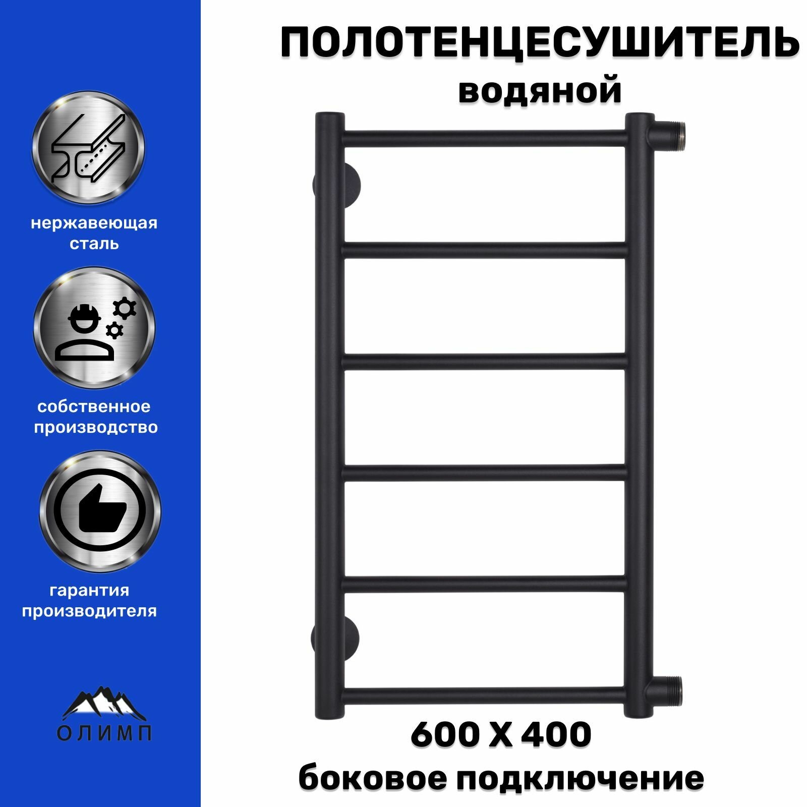 Отзывы на Полотенцесушитель Лесенка Прямая 600х400 черный универсальное боковое подключение 1 дюйм