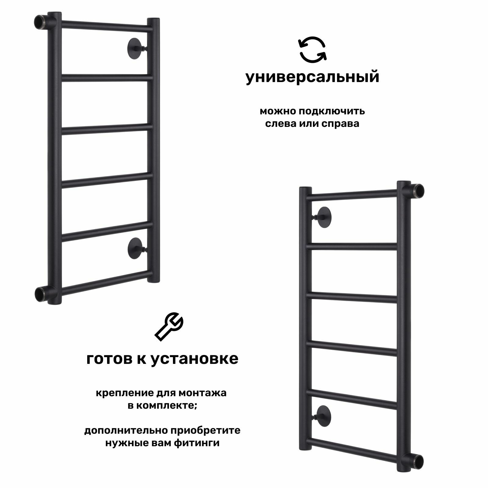 Полотенцесушитель Лесенка Прямая 600х400 черный универсальное боковое подключение 1 дюйм информация: