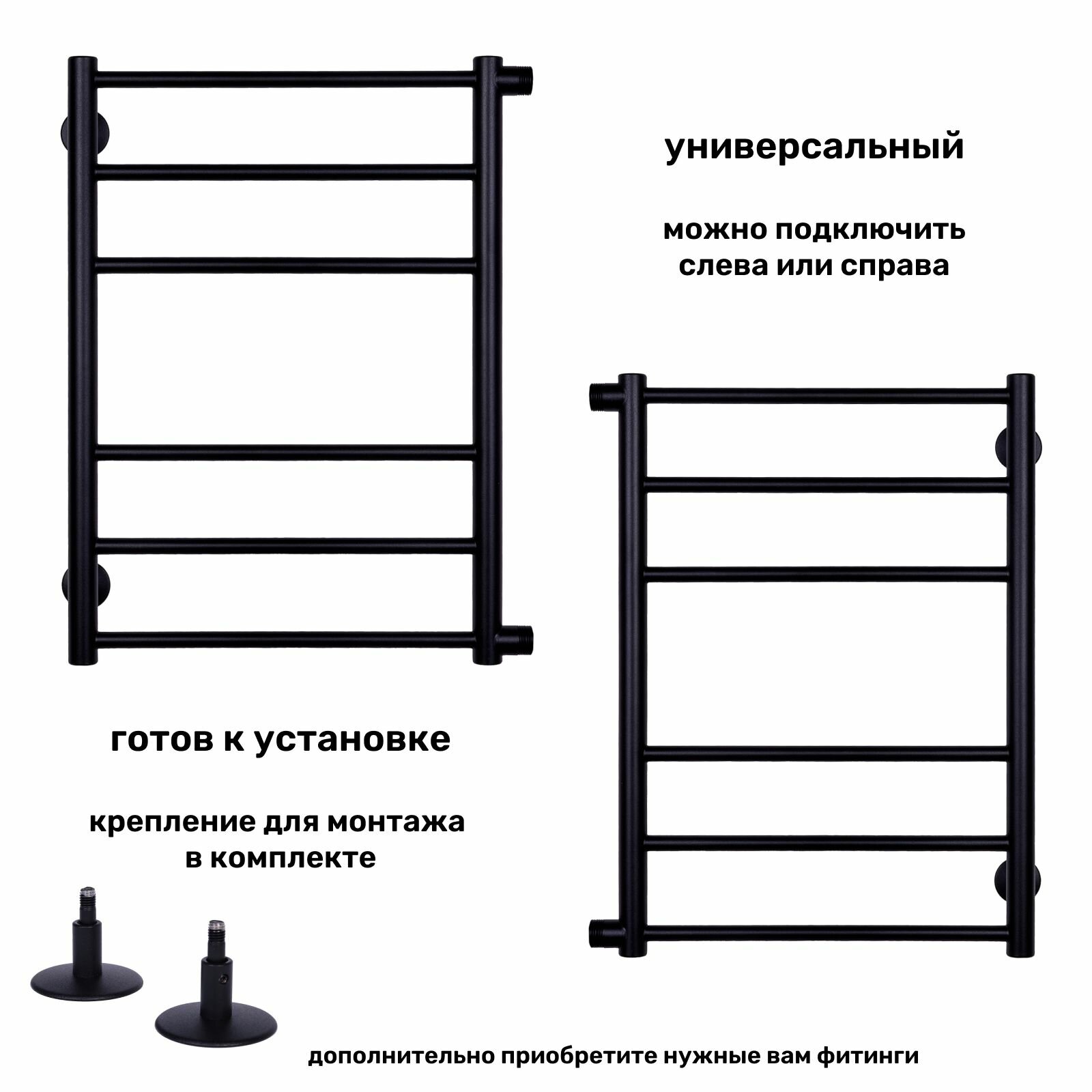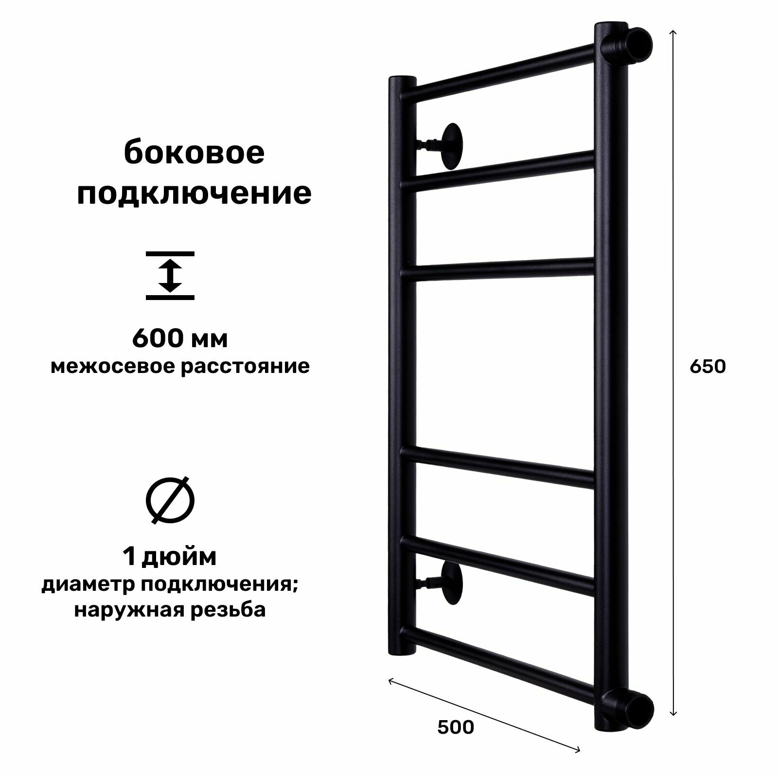 Полотенцесушитель Лесенка Прямая Люкс 600х500 черный матовый боковое подключение 1 дюйм информация: