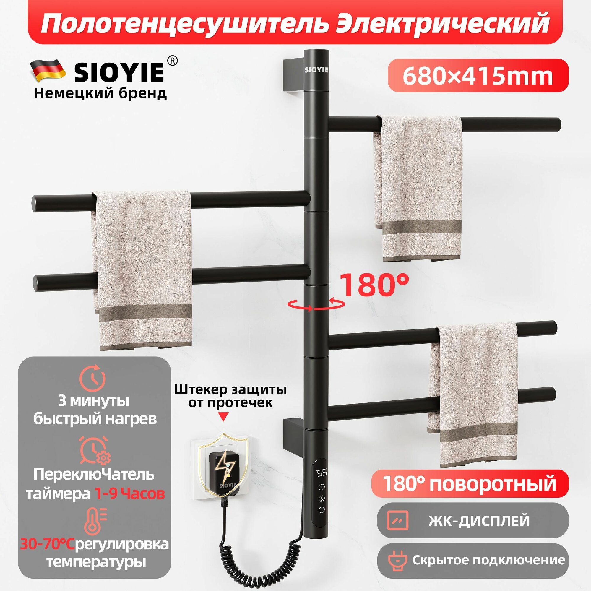 10 цен на Полотенцесушитель электрический поворотный SIOYIE G63 415мм 680мм , нержавеющая сталь черный форма F-образная