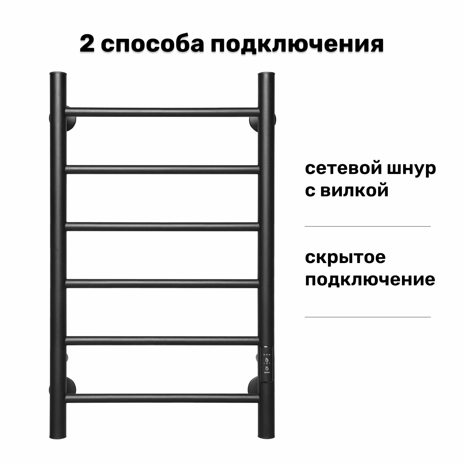 Полотенцесушитель электрический с терморегулятором 400х700 черный матовый универсальное подключение информация: