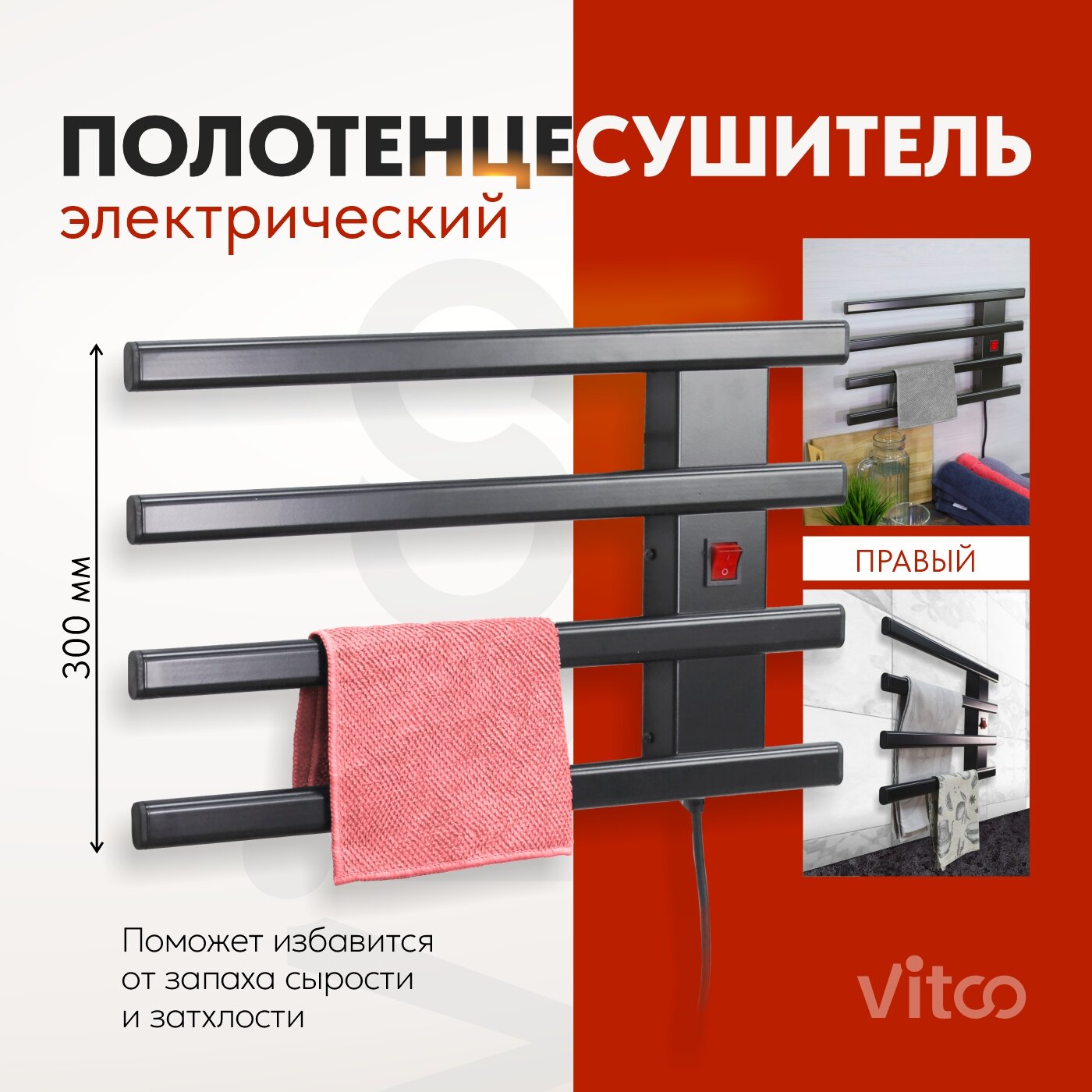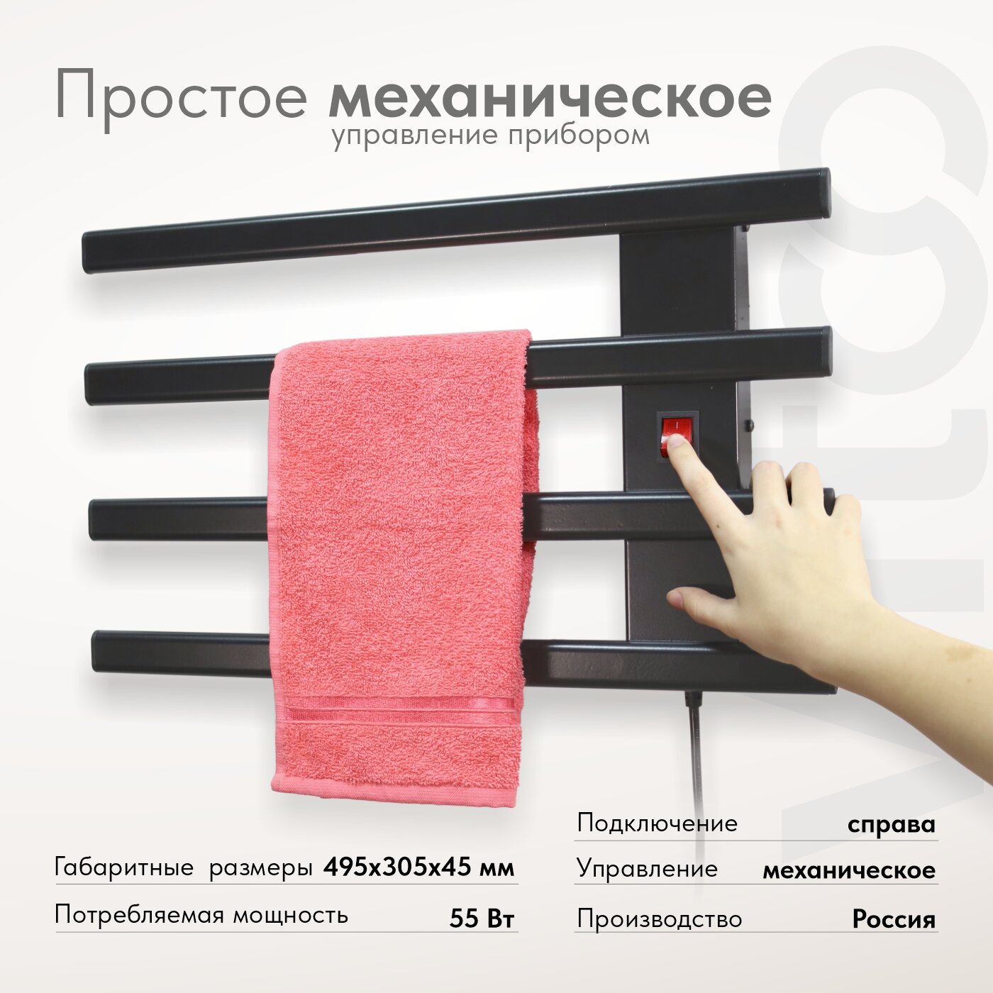 Полотенцесушитель электрический Маргроид В10 30х80, таймер, черный матовый