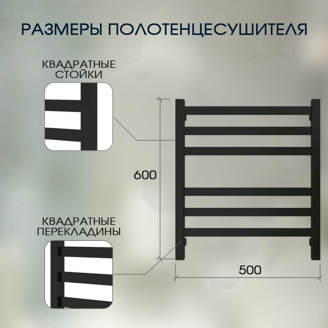Полотенцесушитель Bruno GR-121 500х600 П6 универсальный черный информация: