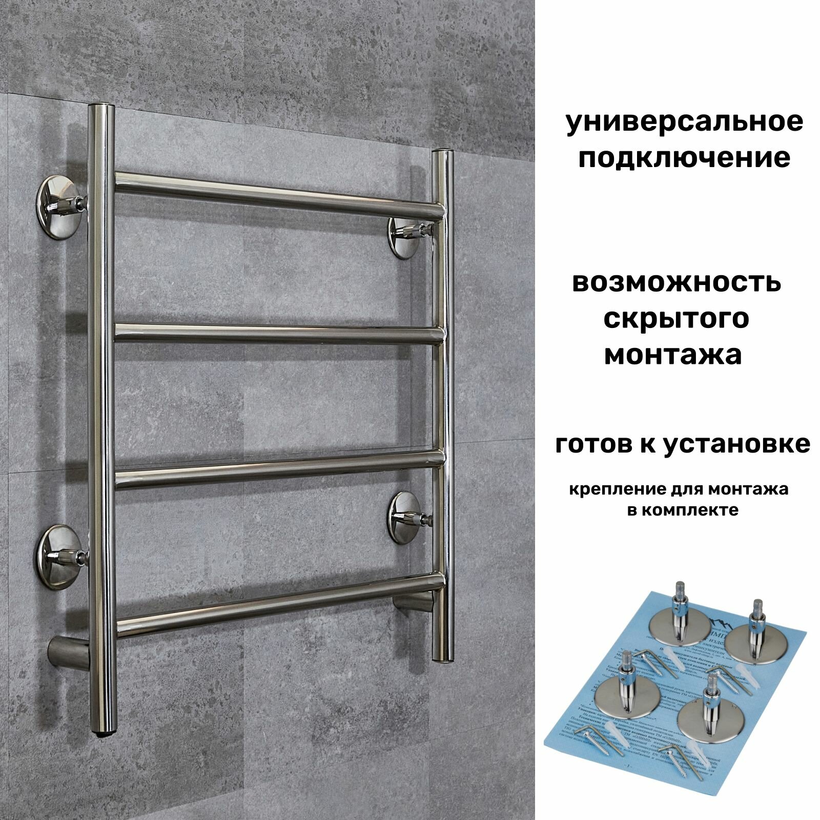 Полотенцесушитель электрический Лесенка Прямая 500х500 универсальное скрытое подключение сухой тэн информация: