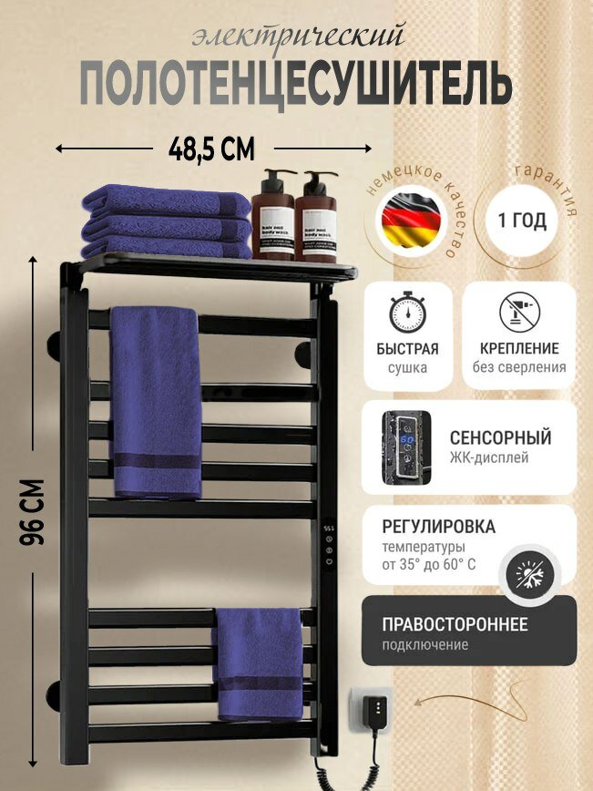 Полотенцесушитель электрический INTREX, c полкой и терморегулятором, черный информация: